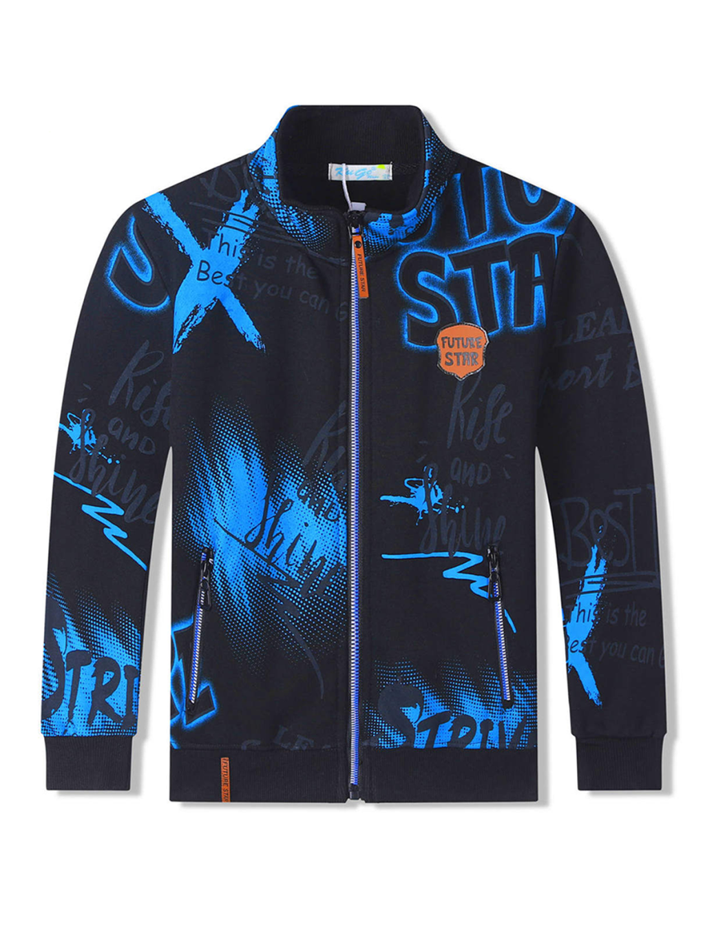 Bluza chłopięca - KUGO GM8672, aplikacja w kolorze czarno-turkusowym