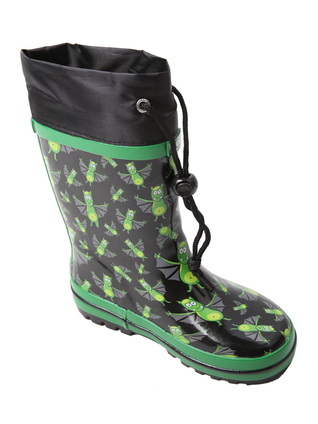 Kalosze chłopięce, z szeleszczącą wstawką na górnej krawędzi, można ściągać sznurkiem z oliwką