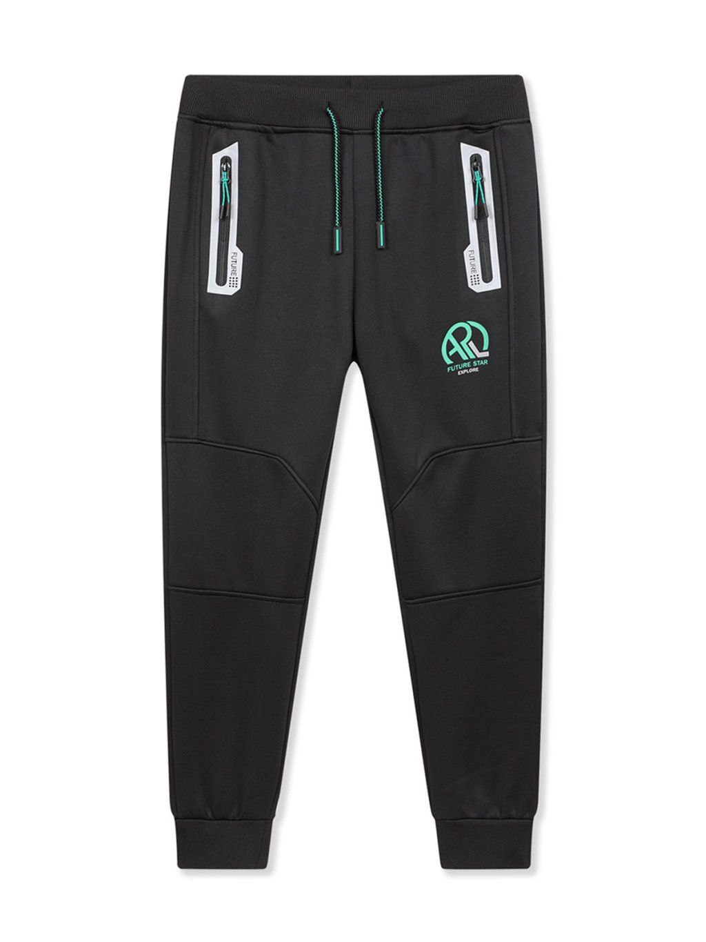 Chłopięce spodnie dresowe typu softshell, ocieplane - KUGO GK8655, aplikacja czarno-zielona