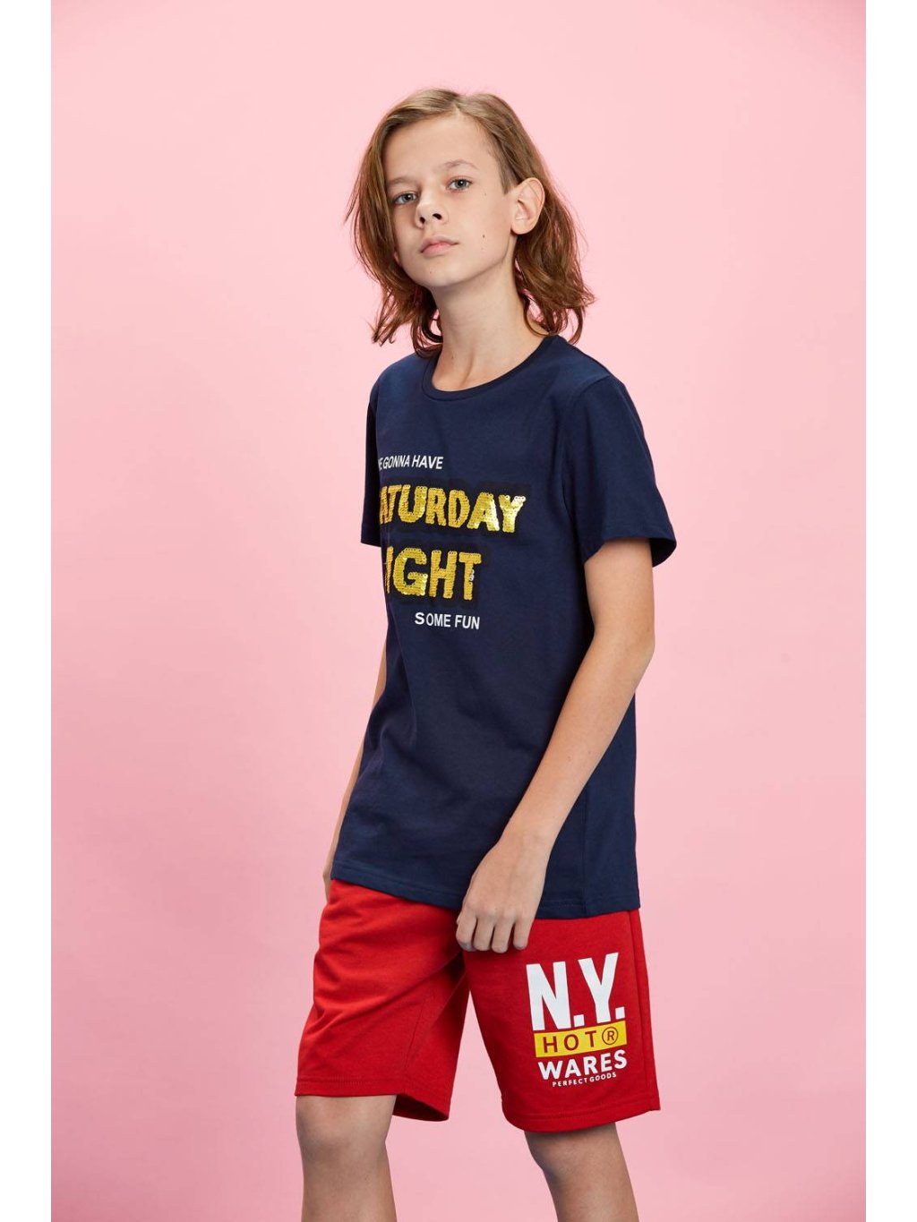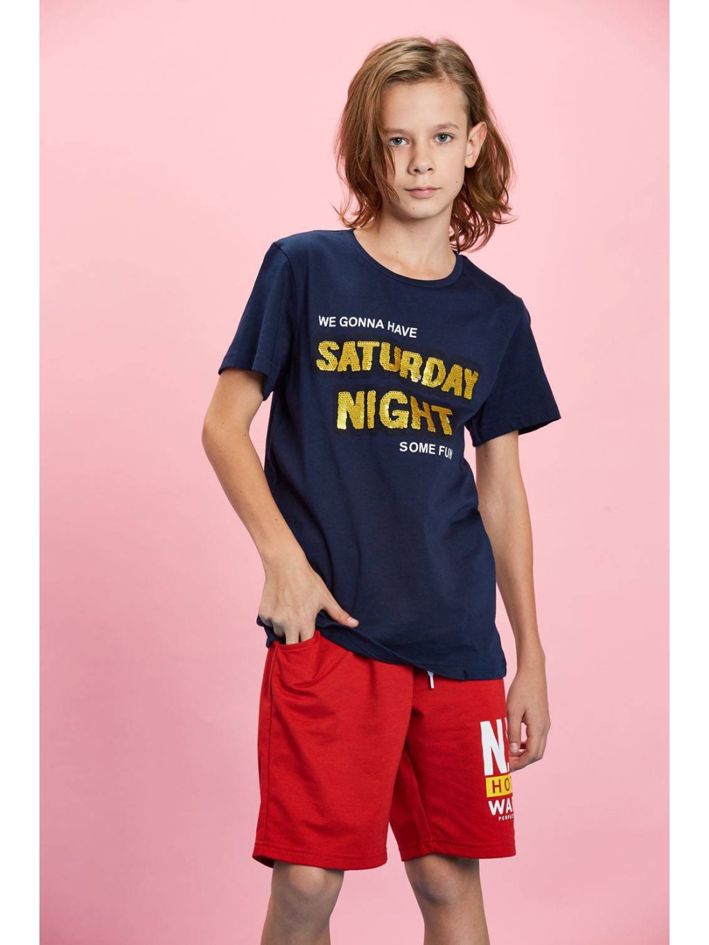 Chłopięcy T-shirt z cekinami - Glo-Story BPO 7075, pomarańczowy