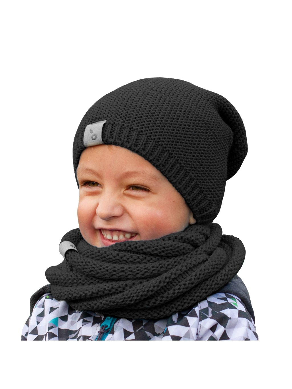 Czapka chłopięca na drutach - Unuo, czarna