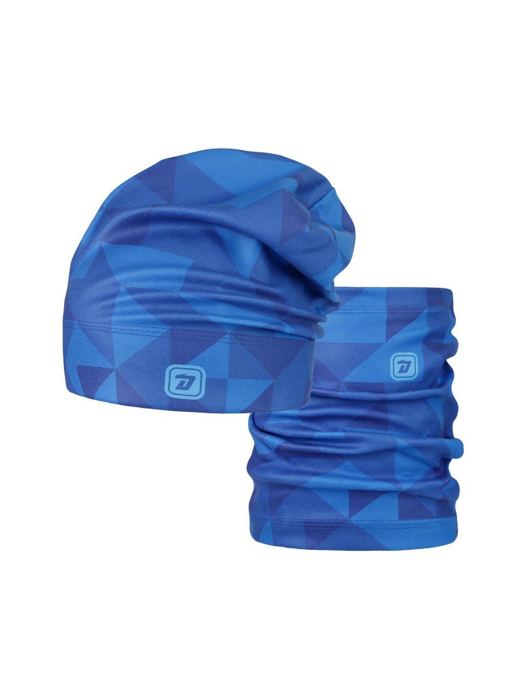 Czapka i apaszka polarowa Dragon - Yetti 61, niebieska, trójkąty