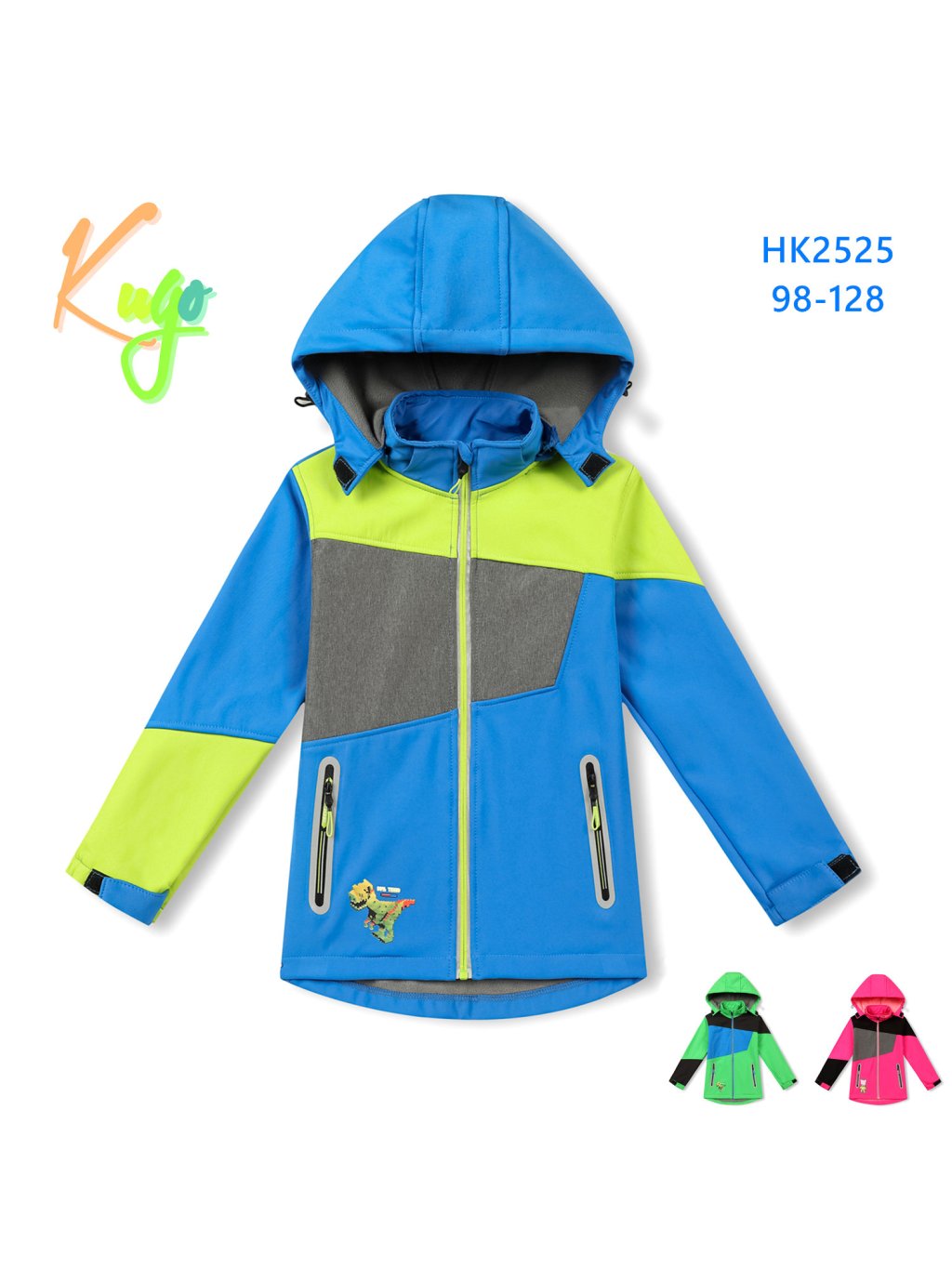 Dziewczęca kurtka softshell na wiosnę, jesień ocieplona polarem, odpinany kaptur, dwie kieszenie zapinane na zamek, elementy odblaskowe