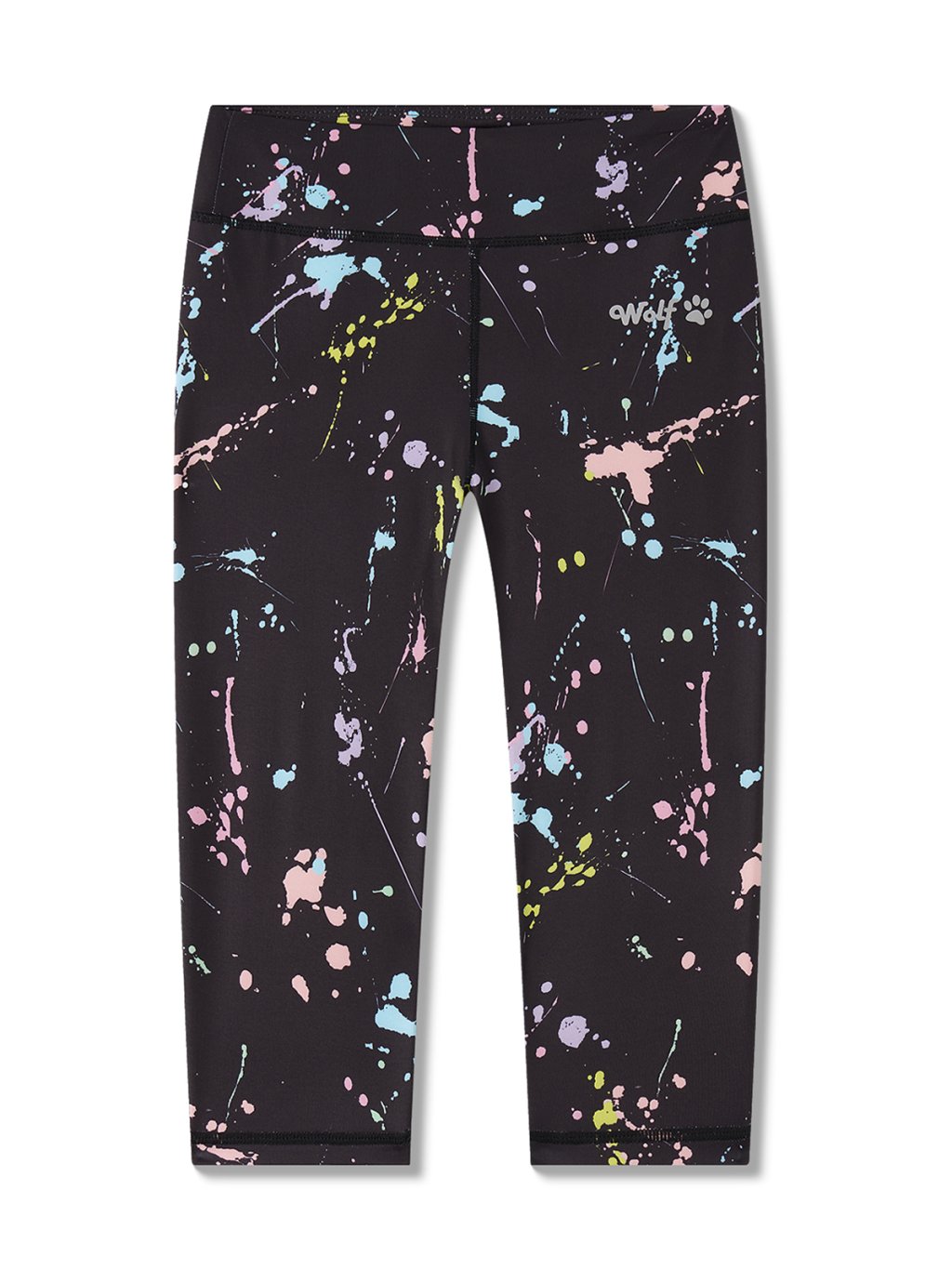 Dziewczęce funkcjonalne legginsy 3/4 - Wolf H2565, czarne / cętki
