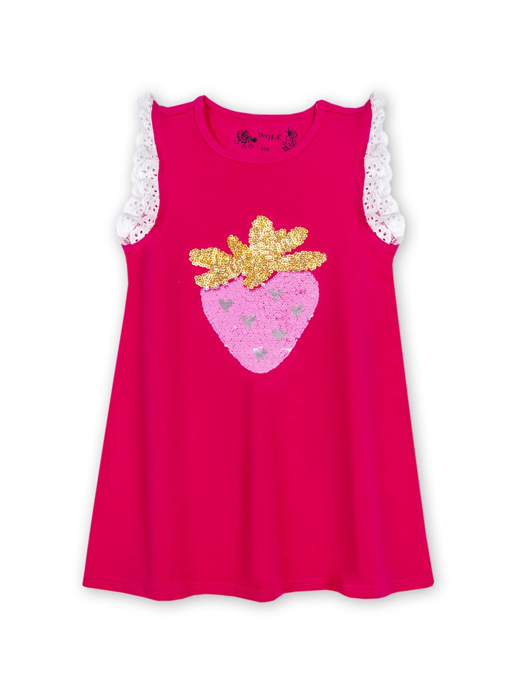 Dziewczęcy t-shirt, podkoszulek z cekinami - Wolf S2923, głęboki róż