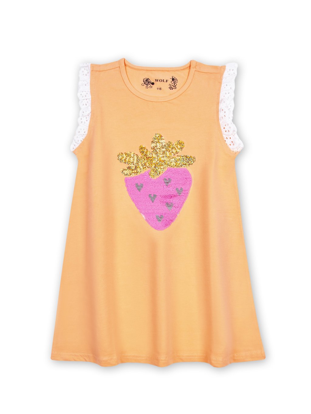 Dziewczęcy t-shirt, podkoszulek z cekinami - Wolf S2923, morelowy