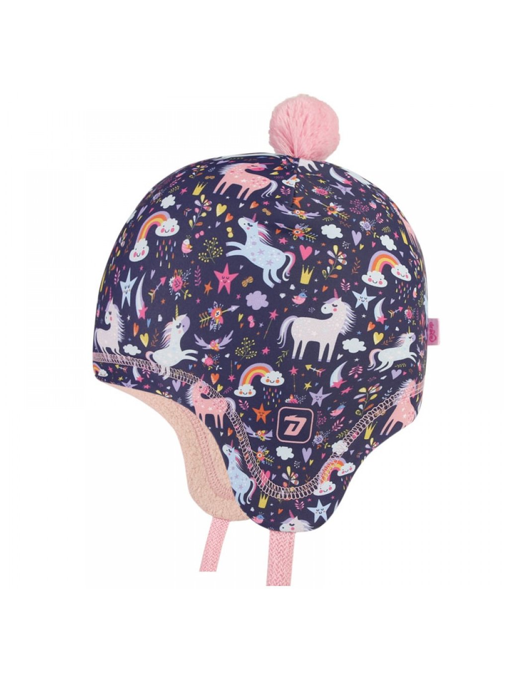 Funkcjonalna czapka zimowa dziewczęca Dráce - Polárka 40, fioletowa, jednorożec