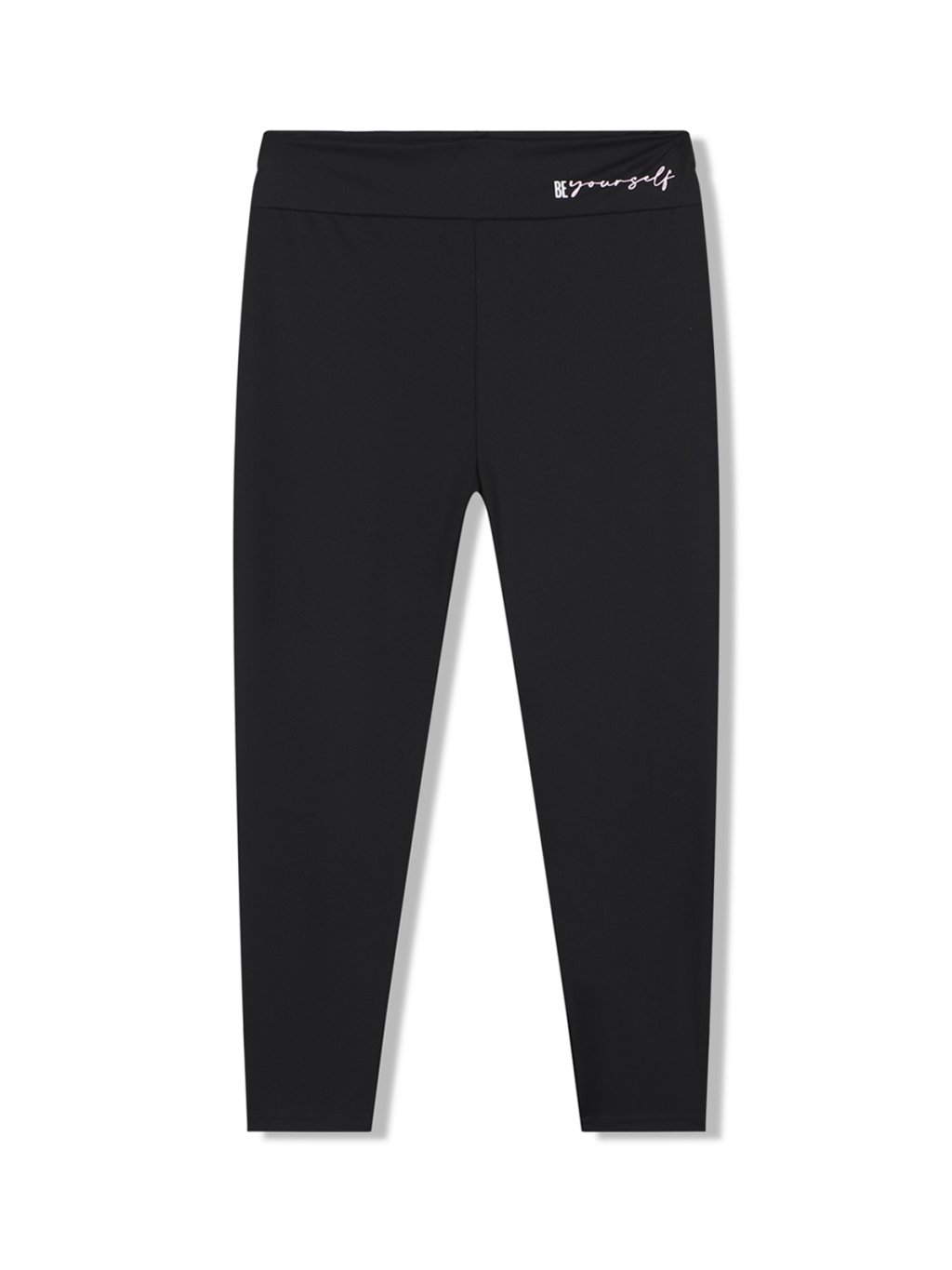 Funkcjonalne legginsy dziewczęce - KUGO GL8720, napisy czarno-jasnoróżowe