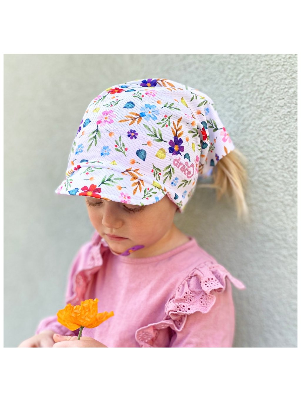 Funkcjonalny szalik Dragon - czapka Emily 34, kolor biały, kwiaty