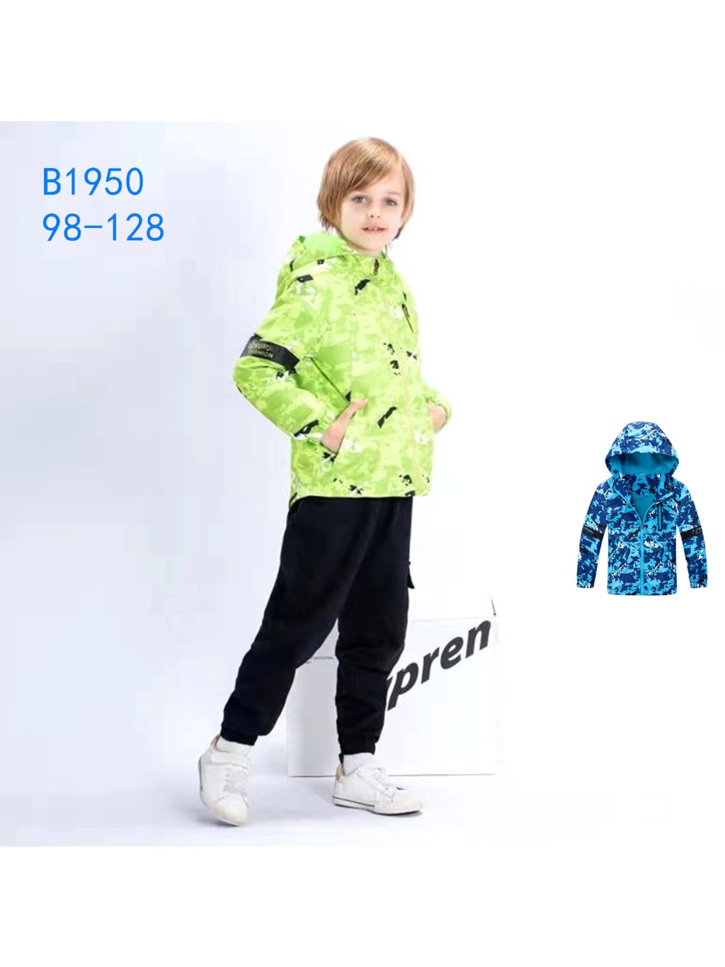 Jesienna kurtka chłopięca ocieplana polarem, wodoodporny kaptur, dwie kieszenie zapinane na zamek, kaptur nieodpinany