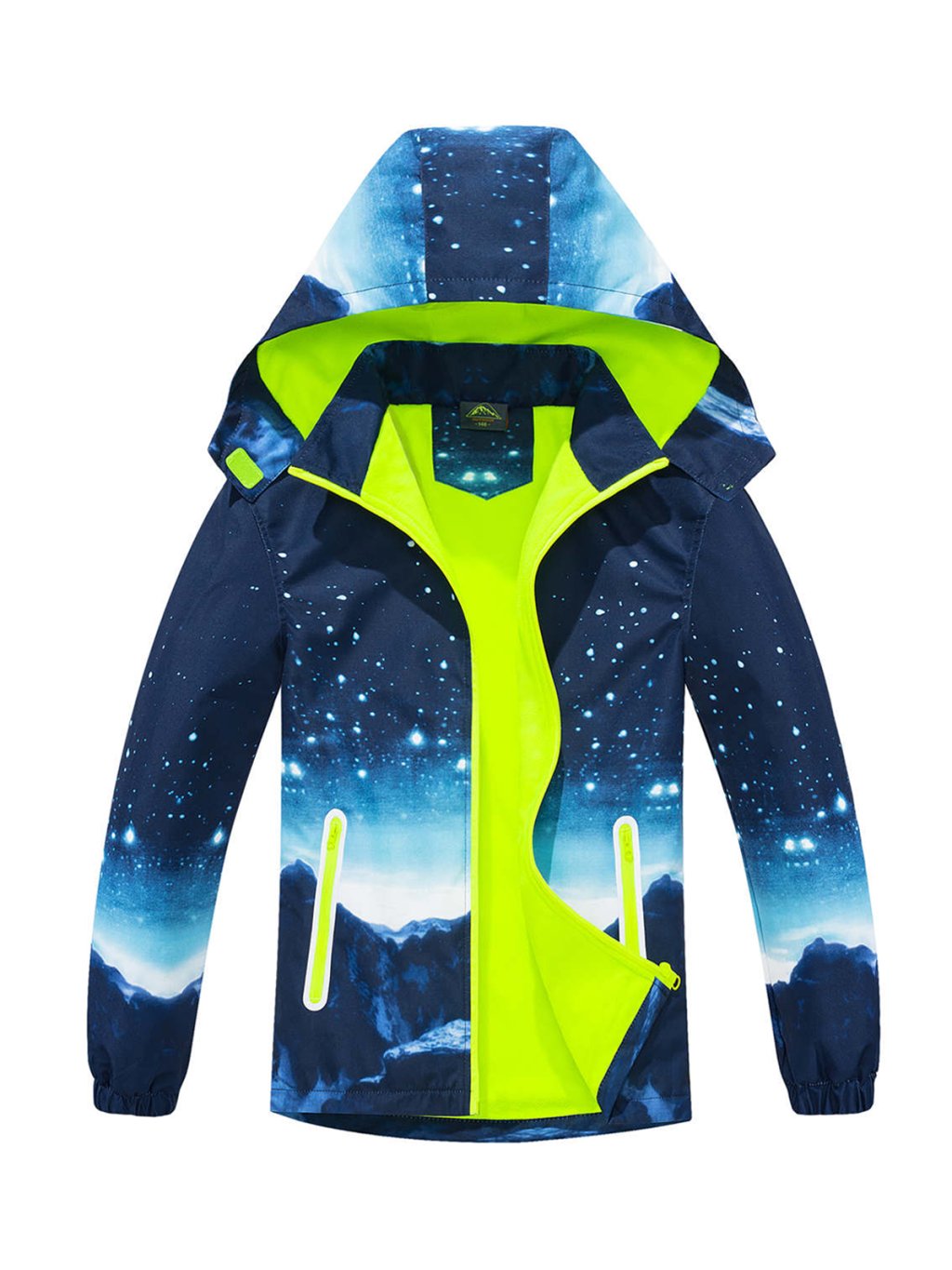 Kurtka chłopięca jesienno-wiosenna ocieplana polarem, wodoodporna, wiatroszczelna, odpinany kaptur, który można ściągać pod szyją na rzep, dwie kieszenie zapinane na zamek, elementy odblaskowe