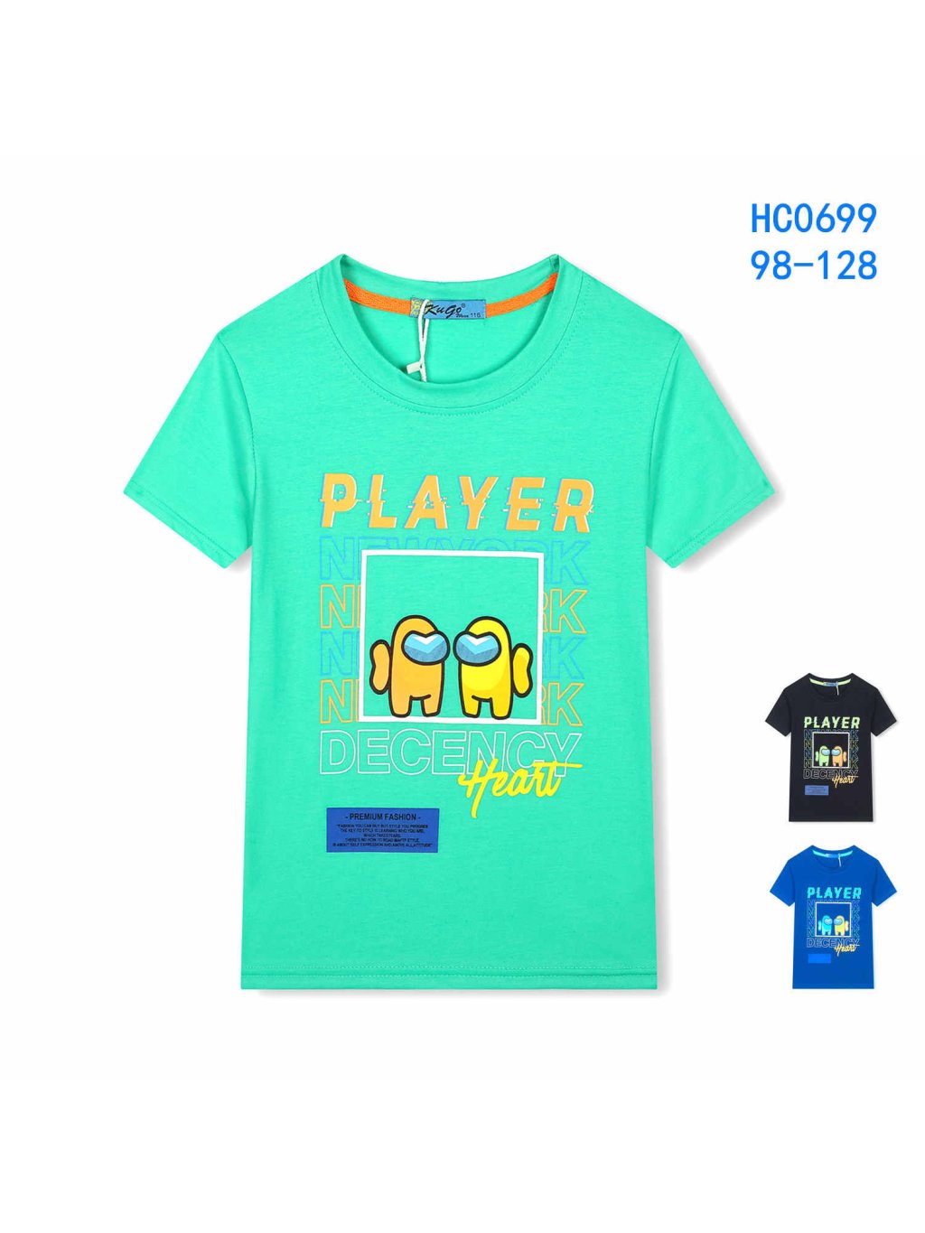 Chłopięcy T-shirt bawełniany z domieszką elastanu z krótkim rękawkiem