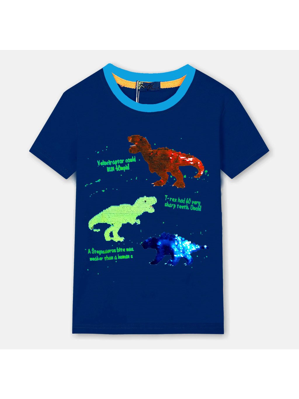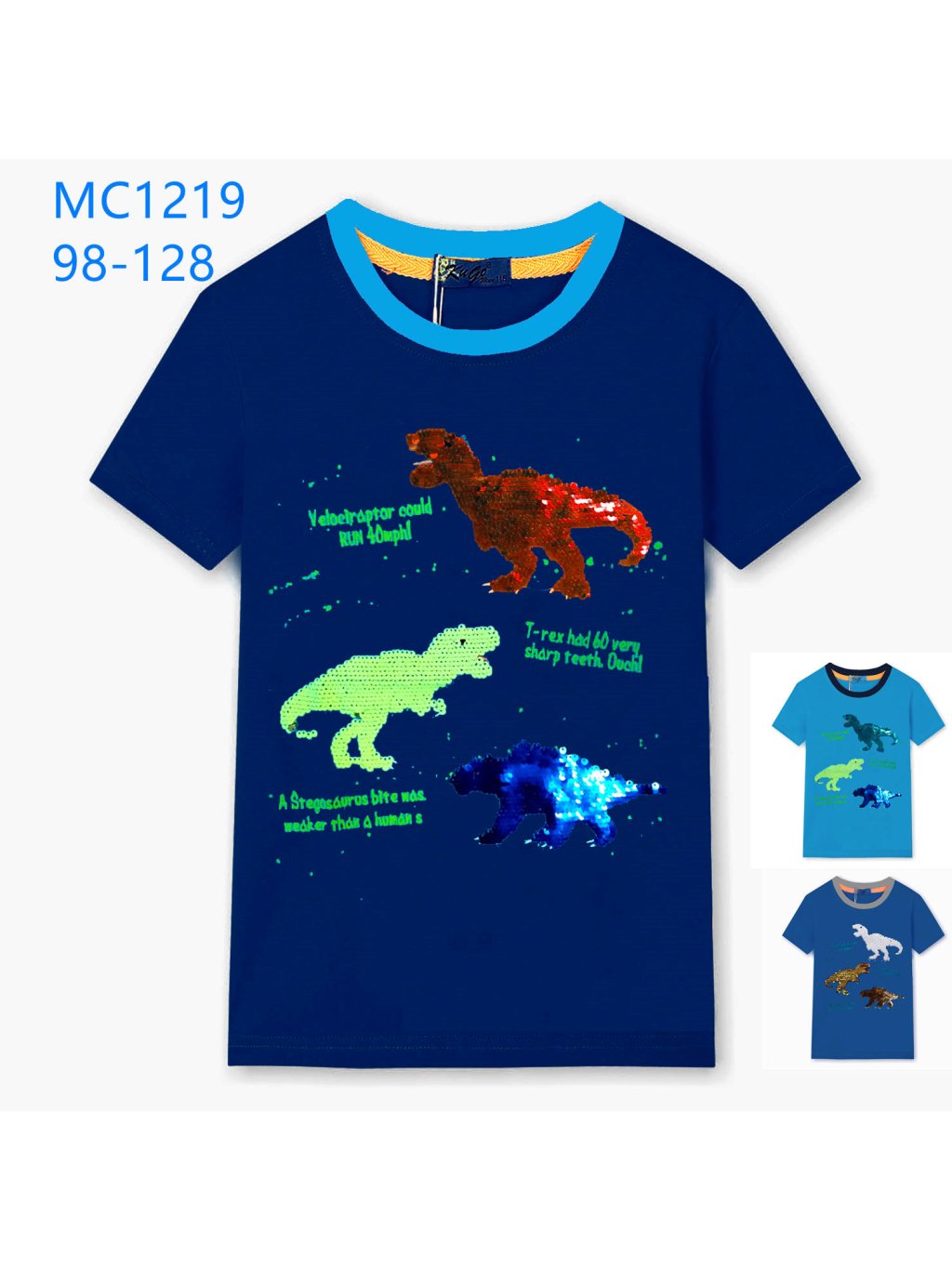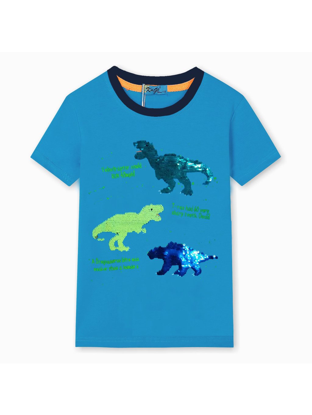 Chłopięcy T-shirt z cekinami, Dinozaury zmieniają kolor po odwróceniu cekinów, materiał: 100% bawełna