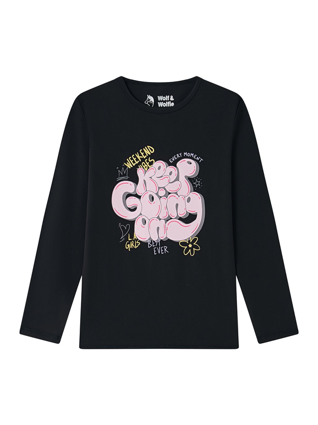 Koszulka dziewczęca - Wolf & Wolfie S2543B, czarna
