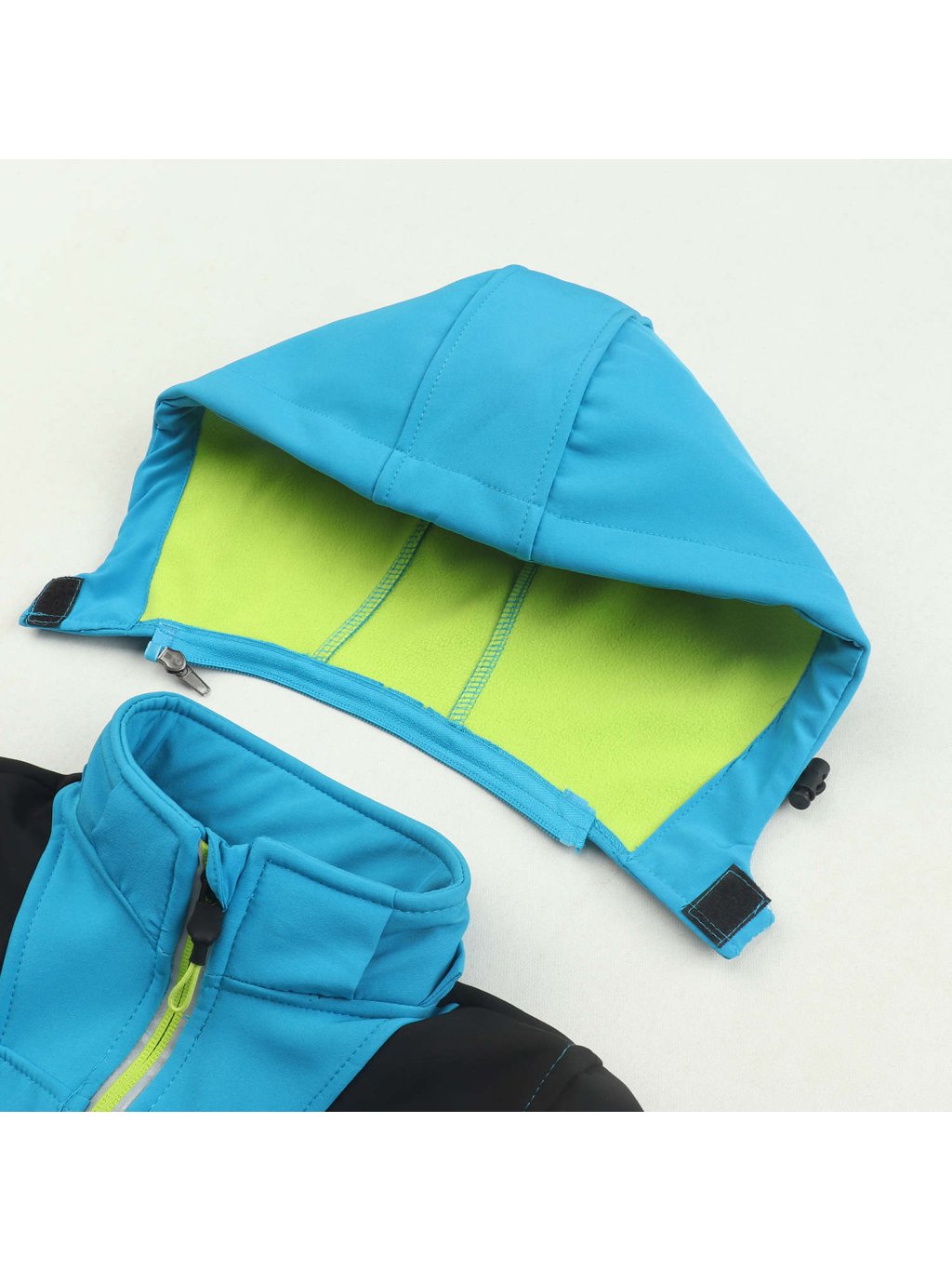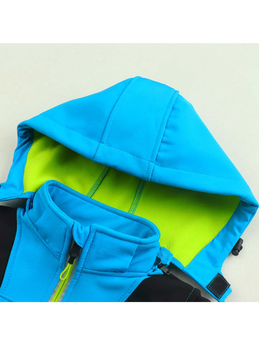 Chłopięca kurtka softshell na wiosnę, jesień ocieplona polarem, odpinany kaptur, dwie kieszenie zapinane na zamek, elementy odblaskowe