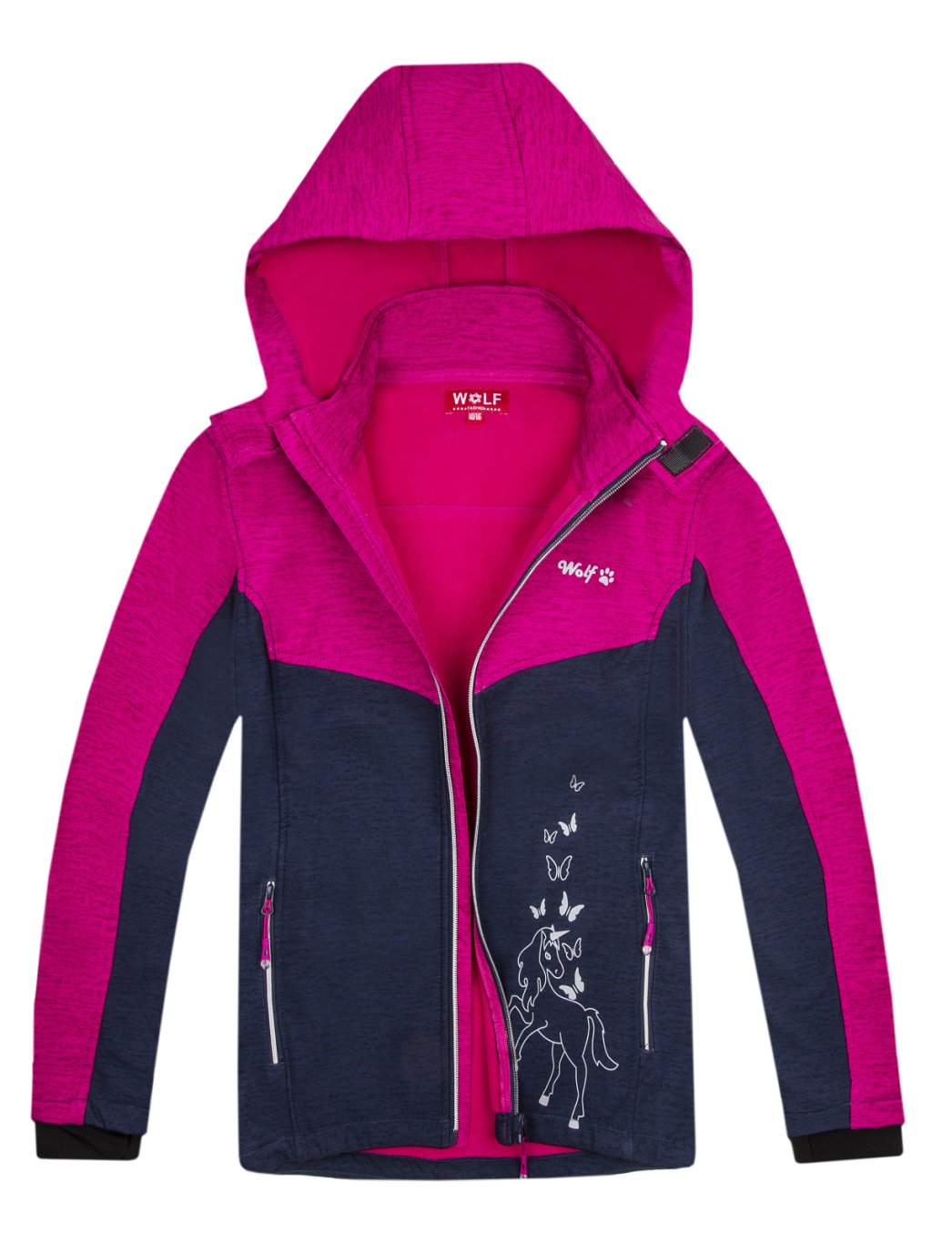 Kurtka softshell dziewczęca, ocieplana - Wolf B2267, różowo-granatowa