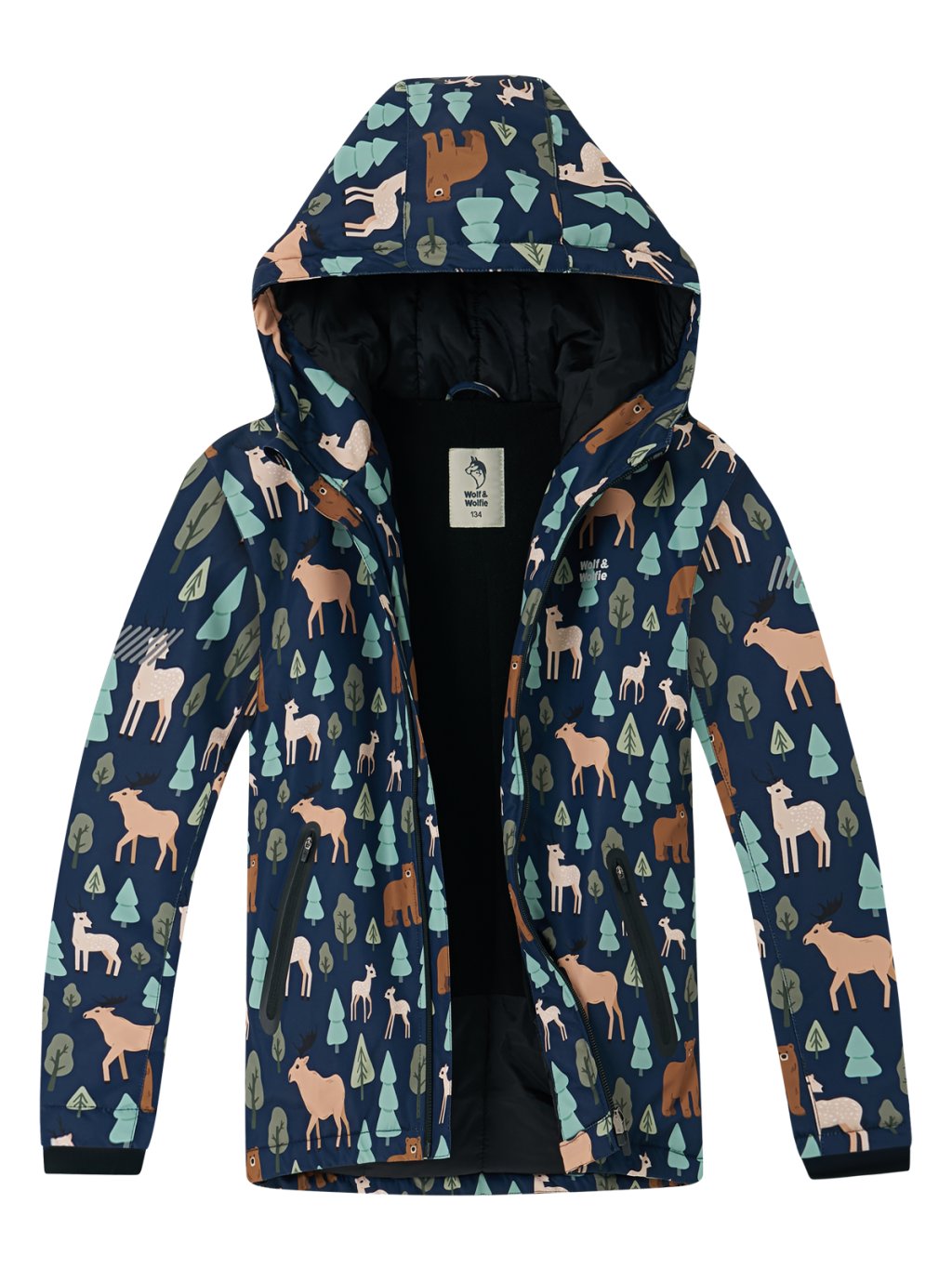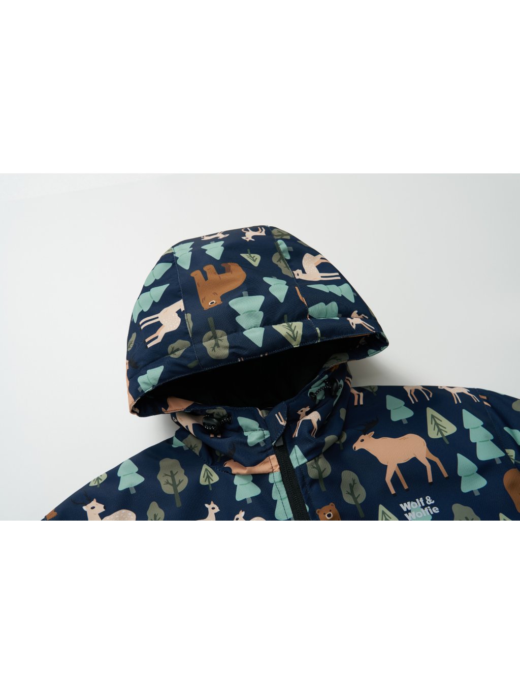 Kurtka zimowa dla chłopców - Wolf & Wolfie B2563, granatowa / zwierzęta leśne