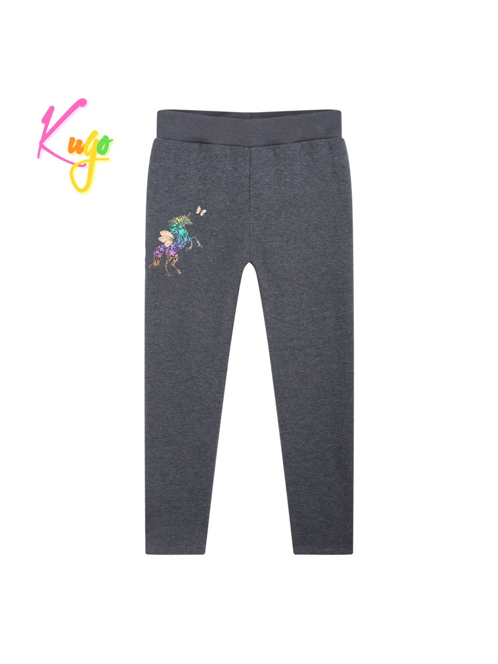 Legginsy dziewczęce z aplikacją, ocieplane - KUGO WL0912, szare