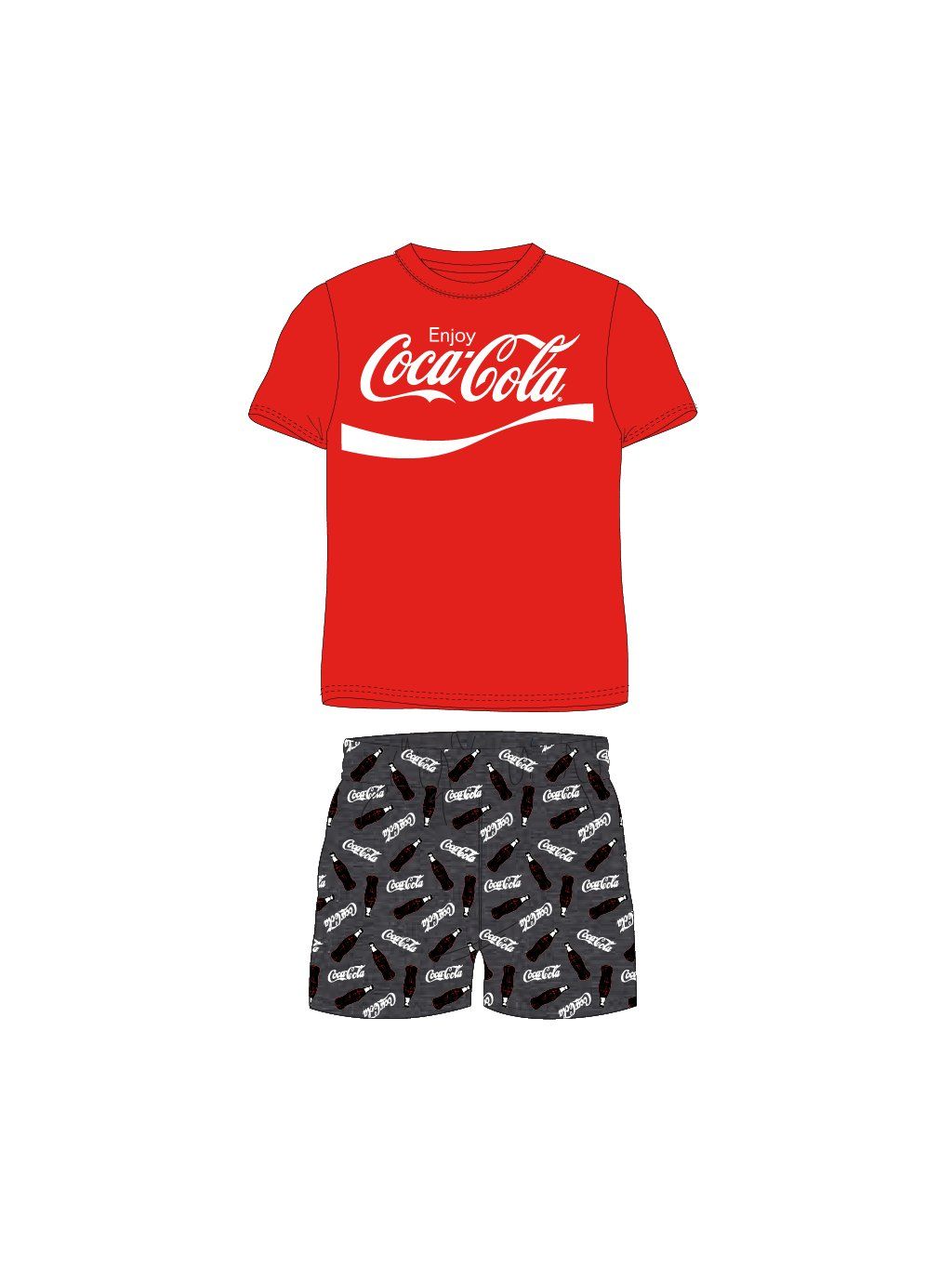 Chłopięca piżama z krótkim rękawkiem i spodenkami z motywem Coca-Coli.