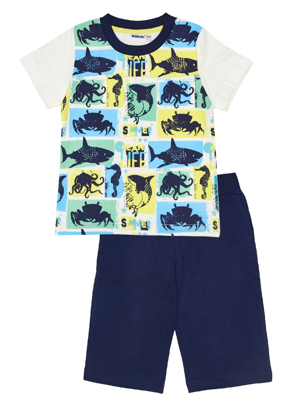 Piżama chłopięca z krótkim rękawem, spodnie 3/4, materiał: 100% bawełna