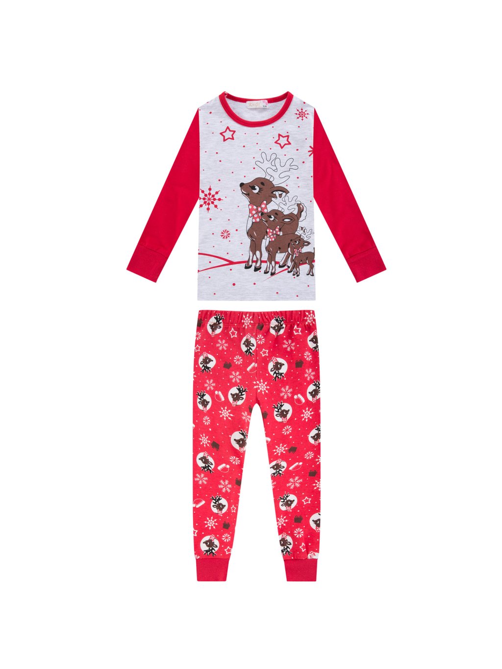 Cieplejsza piżama bawełniana dziewczęca z delikatnym włosiem od wewnątrz, motywem świątecznym, materiał: 100% bawełna