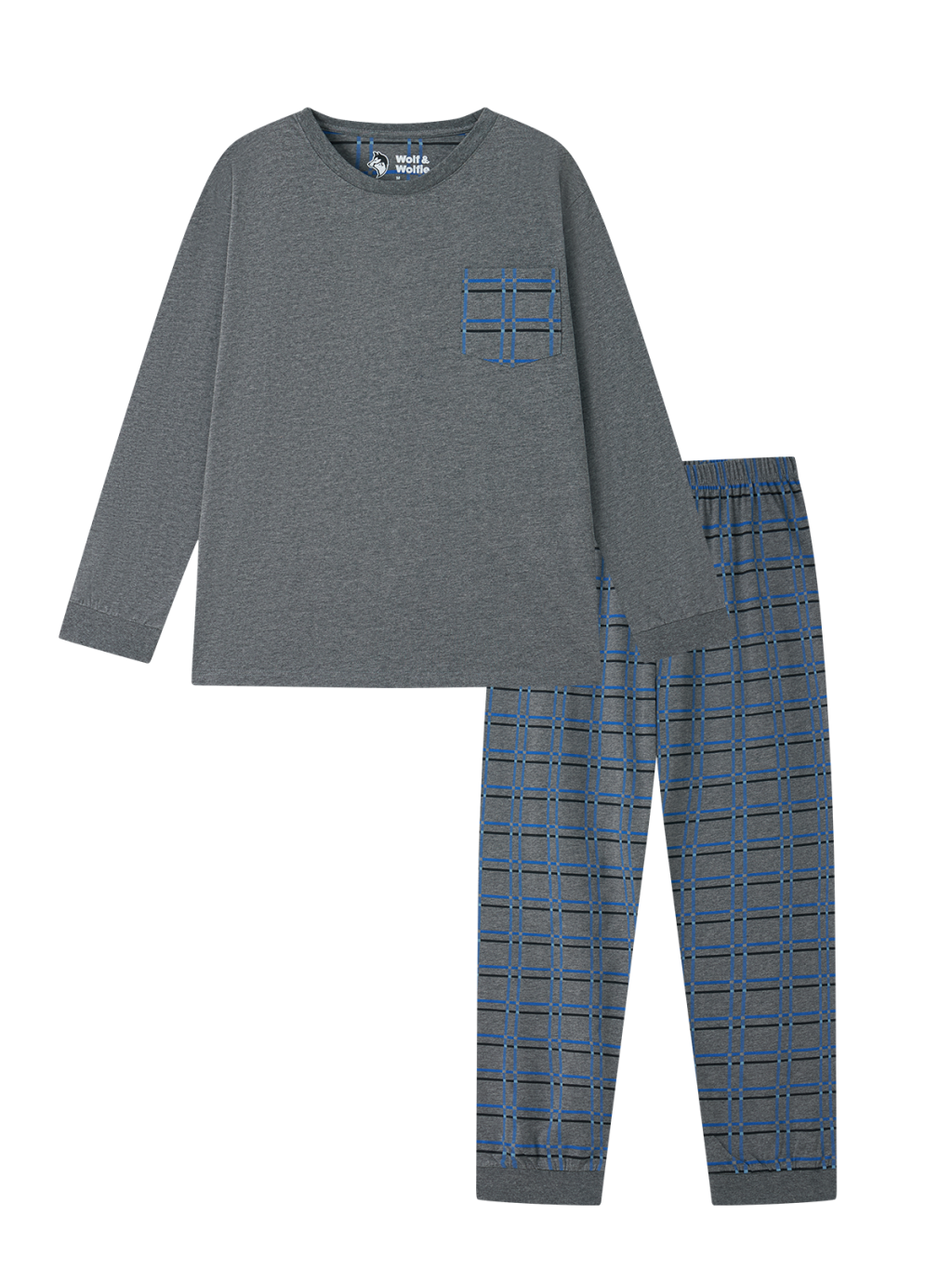 Piżama męska bawełniana z długim rękawem - Wolf & Wolfie S2676A, ciemnoszara