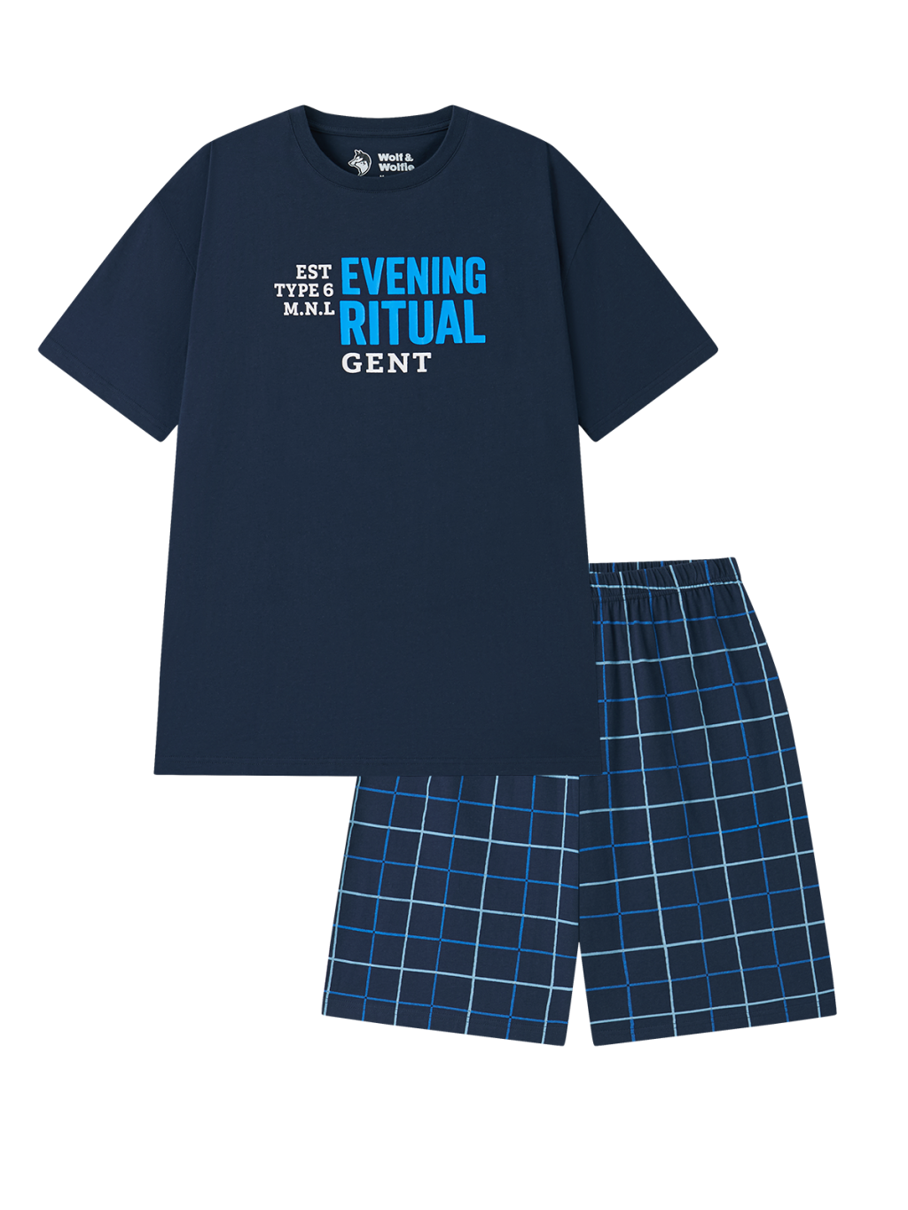 S2675A Męska bawełniana piżama z krótkim rękawem - Wolf & Wolfie S2675A, ciemnoniebieska