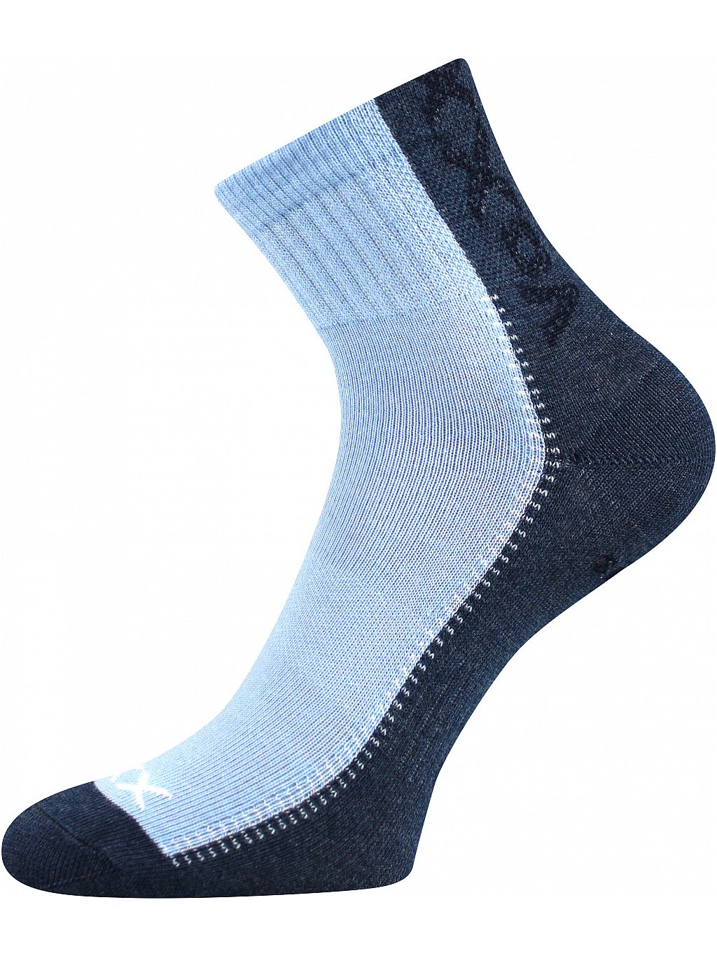 Skarpetki dziecięce VoXX® REVOLTIK w sportowym stylu możesz nosić przez cały dzień. Skarpetki bawełniane są wygodne, luźny dół nie ściąga nogi. Dzięki materiałowi silproX® z jonami srebra, które działają antybakteryjnie, powstawanie bakterii i pleśni jest znacznie ograniczone. Srebro w naturalny sposób niszczy bakterie i nie wytwarza żadnego zapachu. Skarpety w klasie temperaturowej A przystosowane są do temperatur od +10°C do +35°C i dostępne są w opakowaniach po 3 pary.