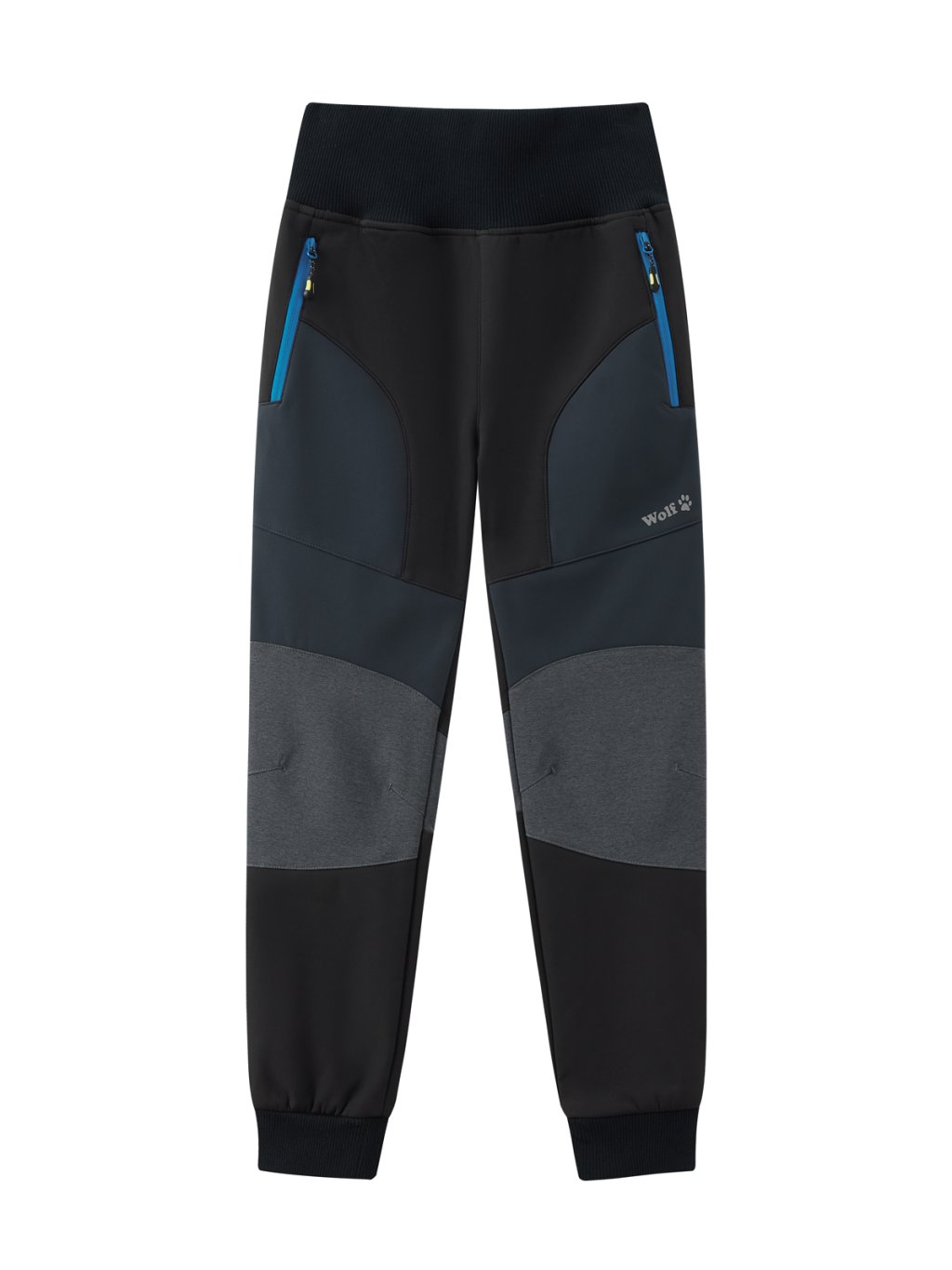 Spodnie chłopięce Softshell, ocieplane - Wolf B2499A, czarno-niebieskie zamki