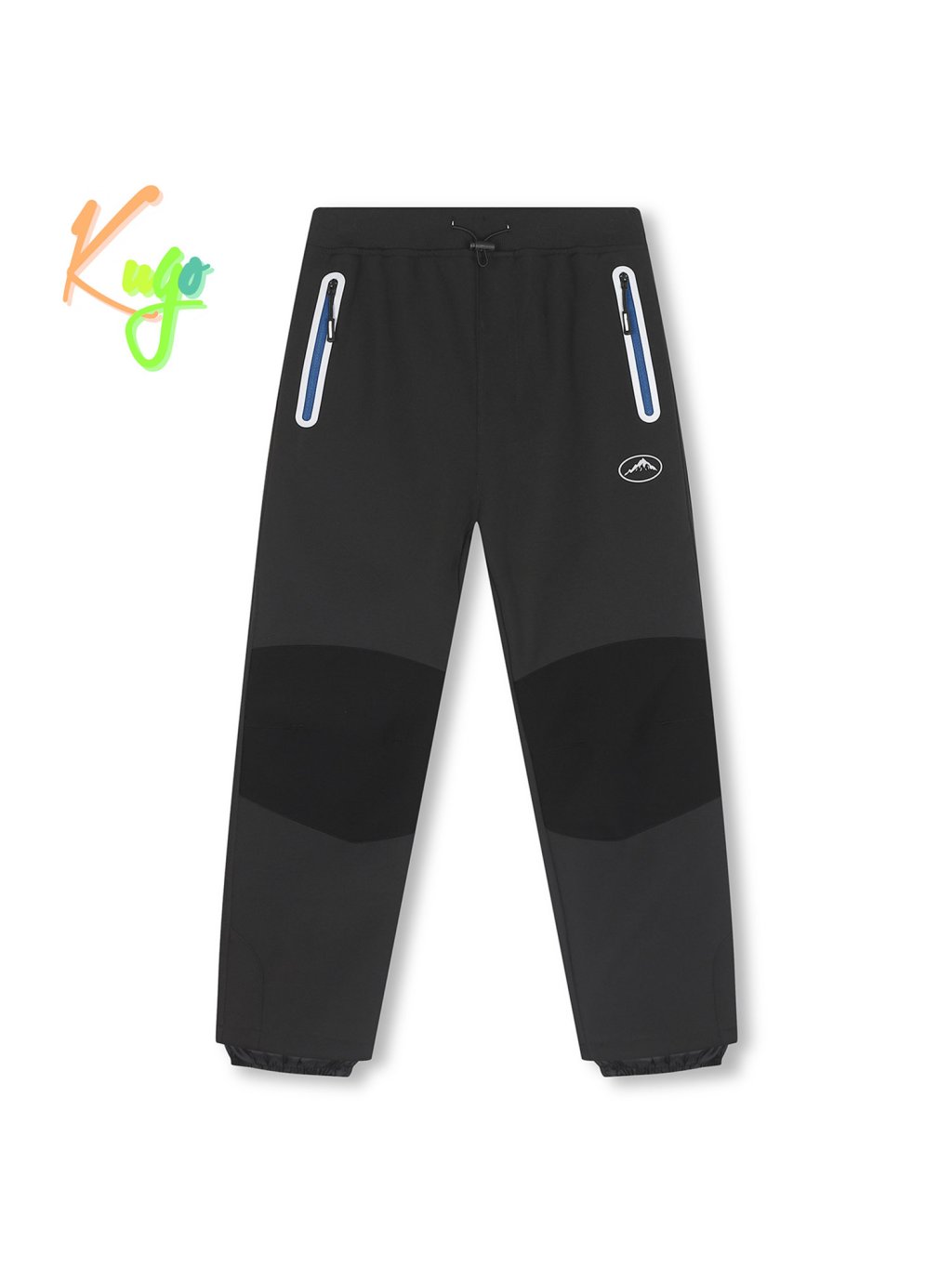 Spodnie chłopięce typu softshell, ocieplane - KUGO H5517, zamki w kolorze ciemnoszarym/niebieskim