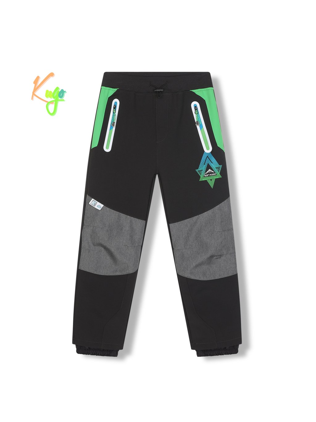 Spodnie chłopięce typu softshell, ocieplane - KUGO HK5620, aplikacja w kolorze ciemnoszarym/zielonym