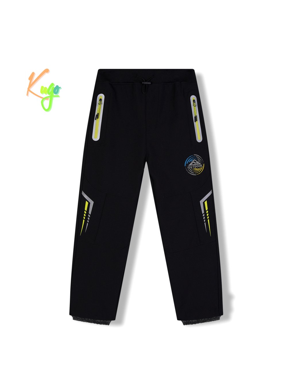 Spodnie chłopięce typu softshell, ocieplane - KUGO HK5621, czarne/sygnalne zamki
