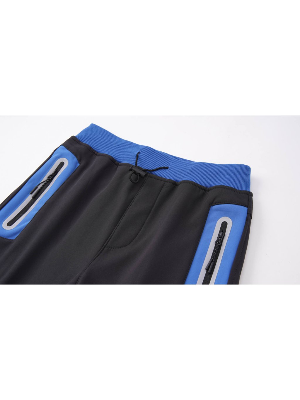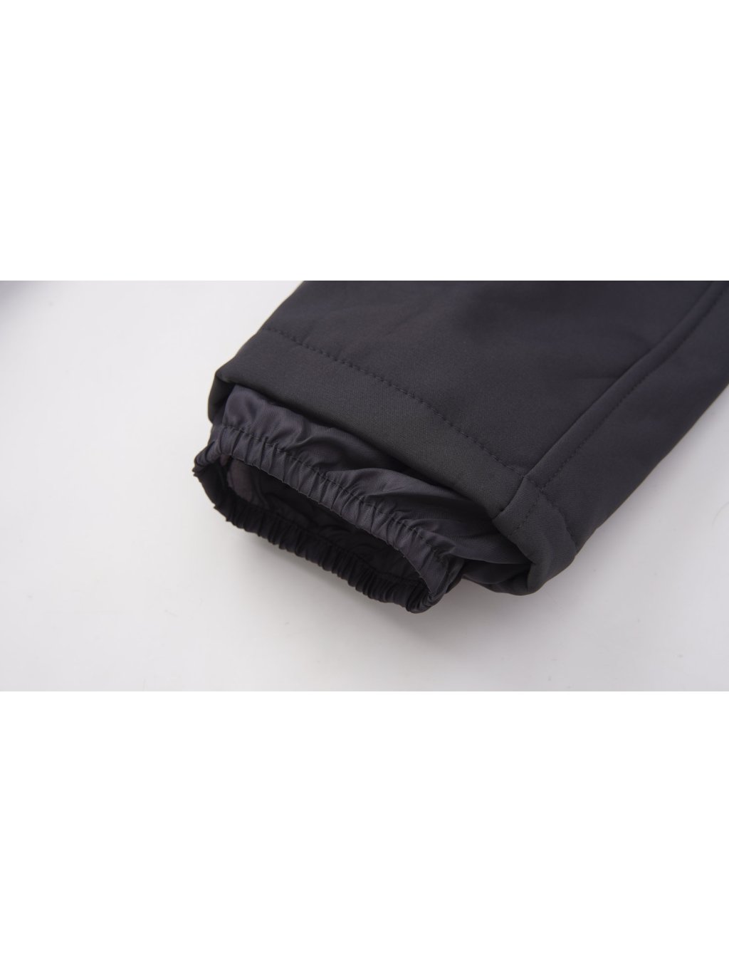 Chłopięce spodnie softshell ocieplane polarem, dwie kieszenie zapinane na zamek, elastyczny pas z gumką i oliwką do ściągania, wstawka w dolnej części nogawek, elementy odblaskowe.