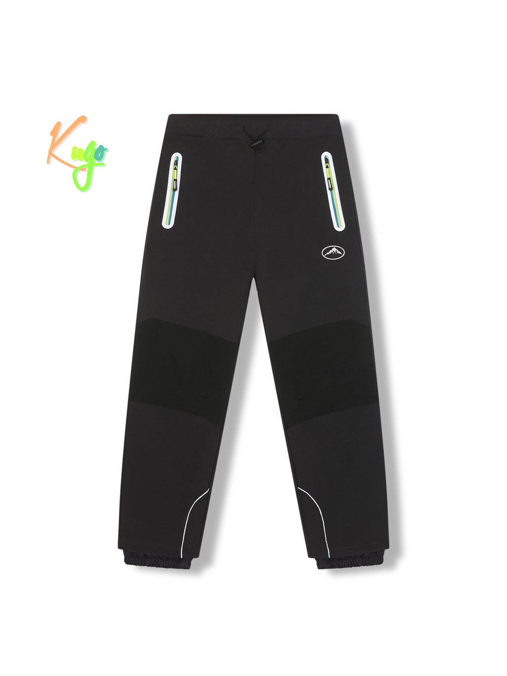 Spodnie chłopięce typu softshell, ocieplane - KUGO HK5623, zamki w kolorze ciemnoszarym/niebieskim
