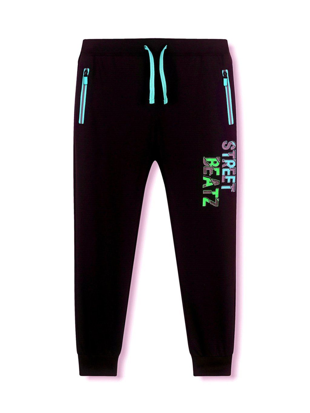 Spodnie dresowe chłopięce - KUGO MT0568, zamki czarno-niebieskie