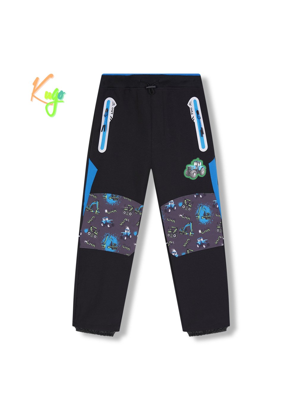 Spodnie softshell chłopięce, ocieplane - KUGO HK5613, zamki czarno-turkusowe