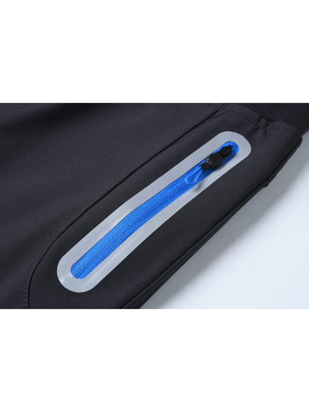 Spodnie softshell chłopięce bez ocieplenia, dwie kieszenie zapinane na zamek, elastyczny pas z gumką i oliwką do ściągania, dolna część spodni z wkładką z gwizdkiem, elementy odblaskowe
