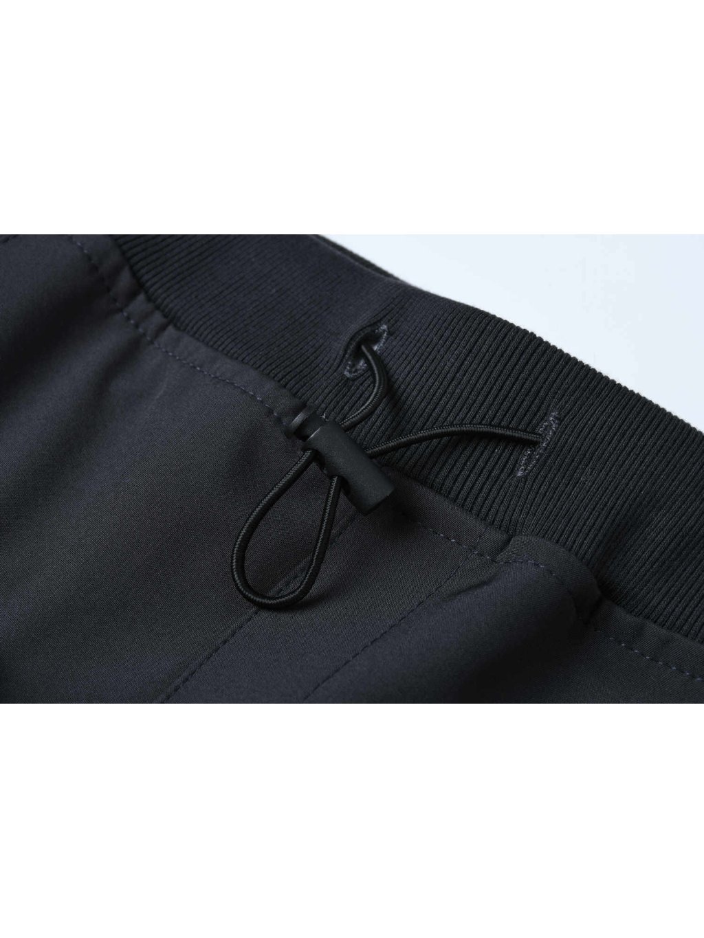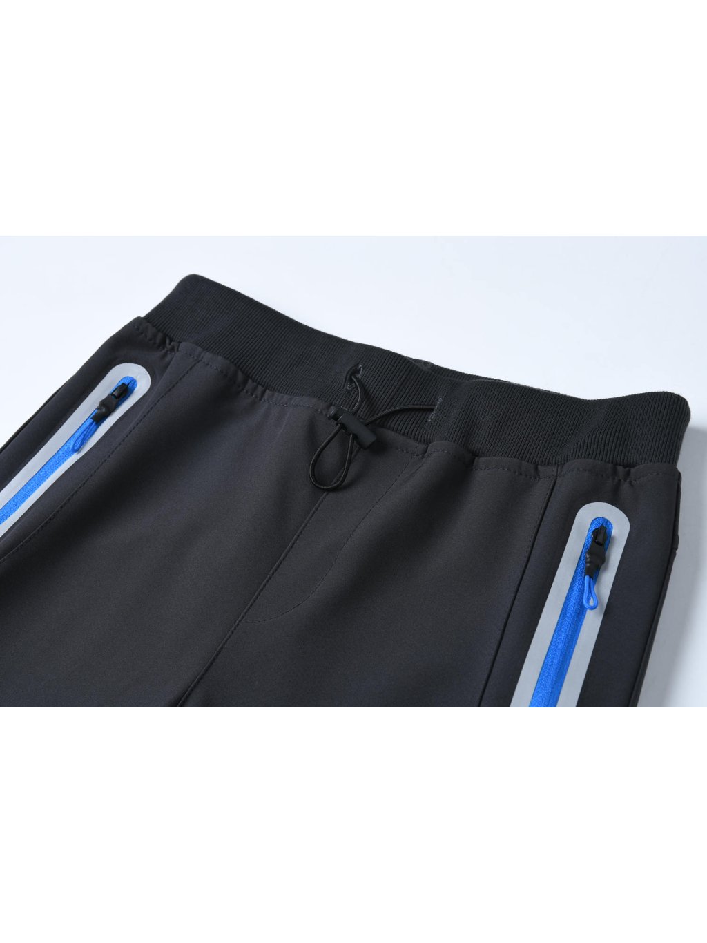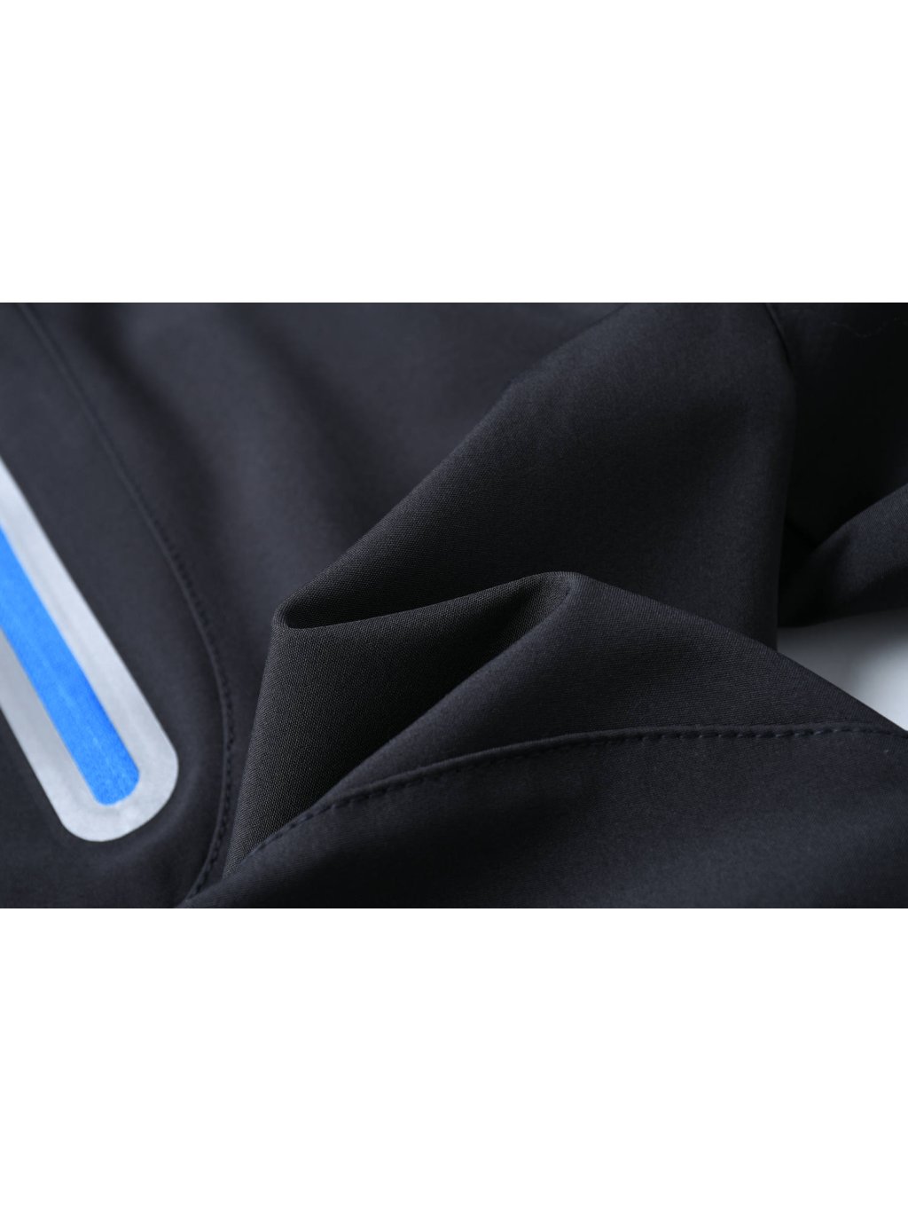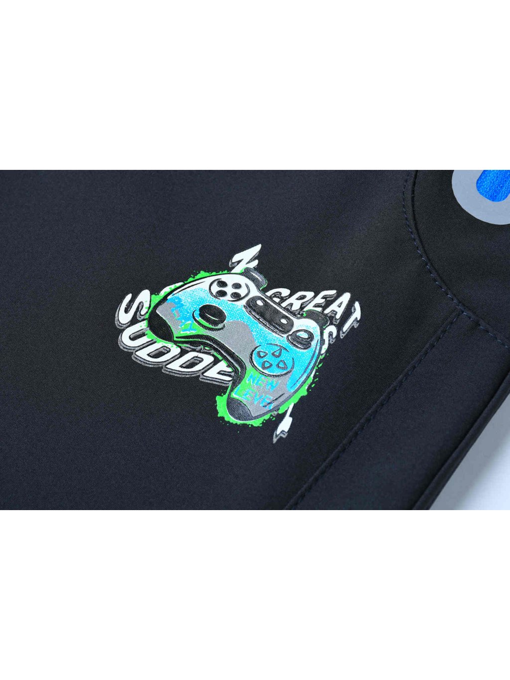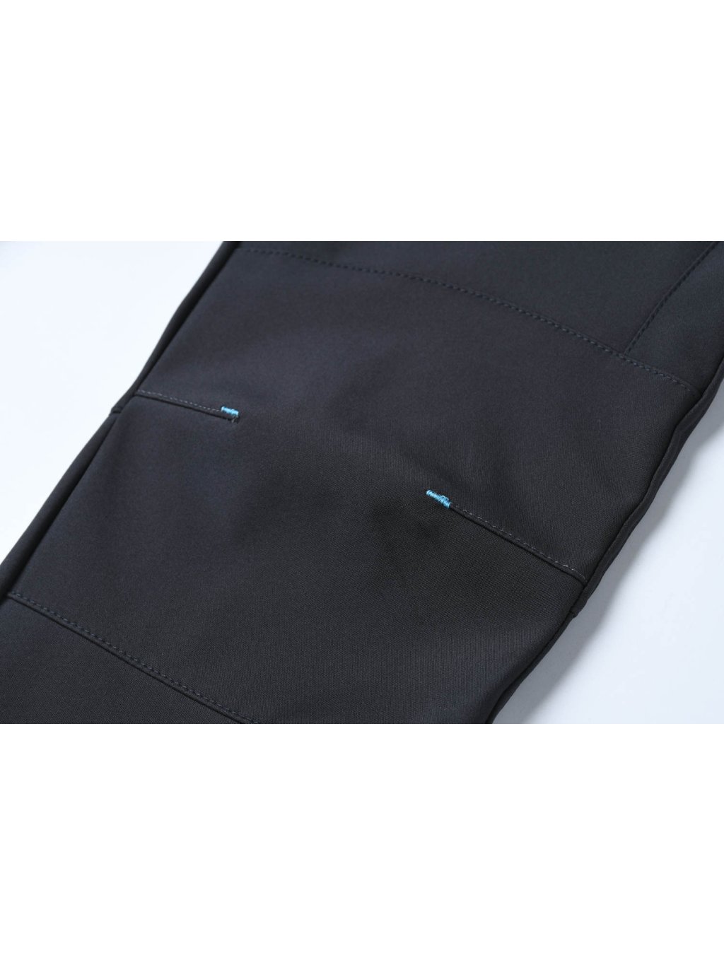 Spodnie softshell chłopięce bez ocieplenia, dwie kieszenie zapinane na zamek, elastyczny pas z gumką i oliwką do ściągania, dolna część spodni z wkładką z gwizdkiem, elementy odblaskowe