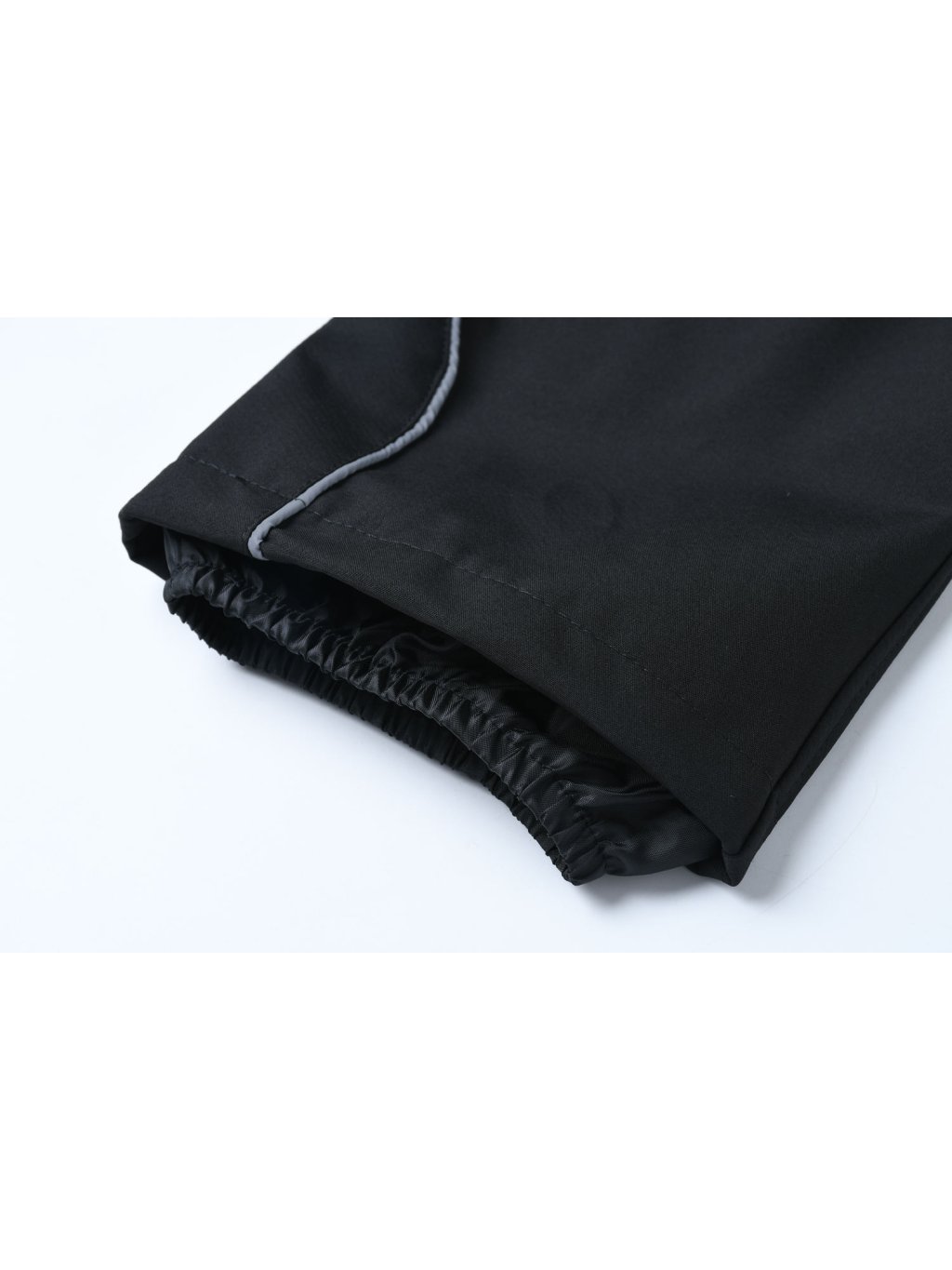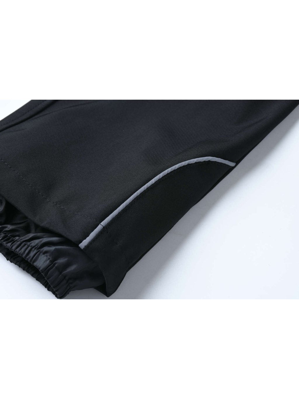 Spodnie softshell chłopięce bez ocieplenia, dwie kieszenie zapinane na zamek, elastyczny pas z gumką i oliwką do ściągania, dolna część spodni z wkładką z gwizdkiem, elementy odblaskowe