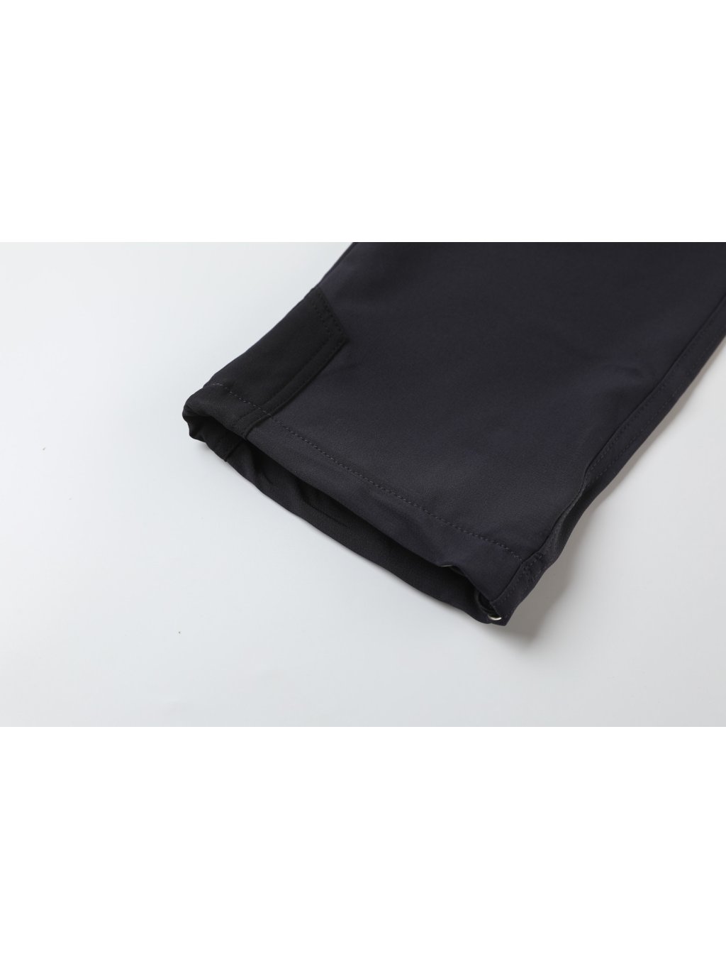 Letnie spodnie chłopięce typu softshell, w pasie z gumką i oliwką do ściągania, słabe (słabsze od klasycznych bez ocieplenia), bez podszewki, oddychające, elementy odblaskowe, z przodu dwie kieszenie zapinane na zamek, gumka z oliwka do ujędrniania końcówek nóg