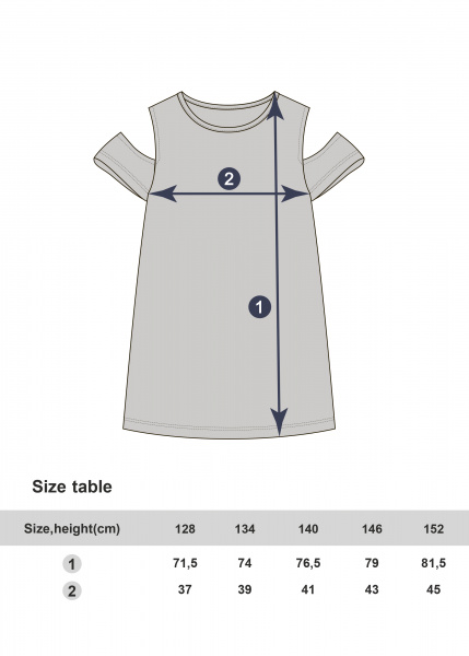 Sukienka dziewczęca, tunika z odkrytymi ramionami, materiał: 100% bawełna
