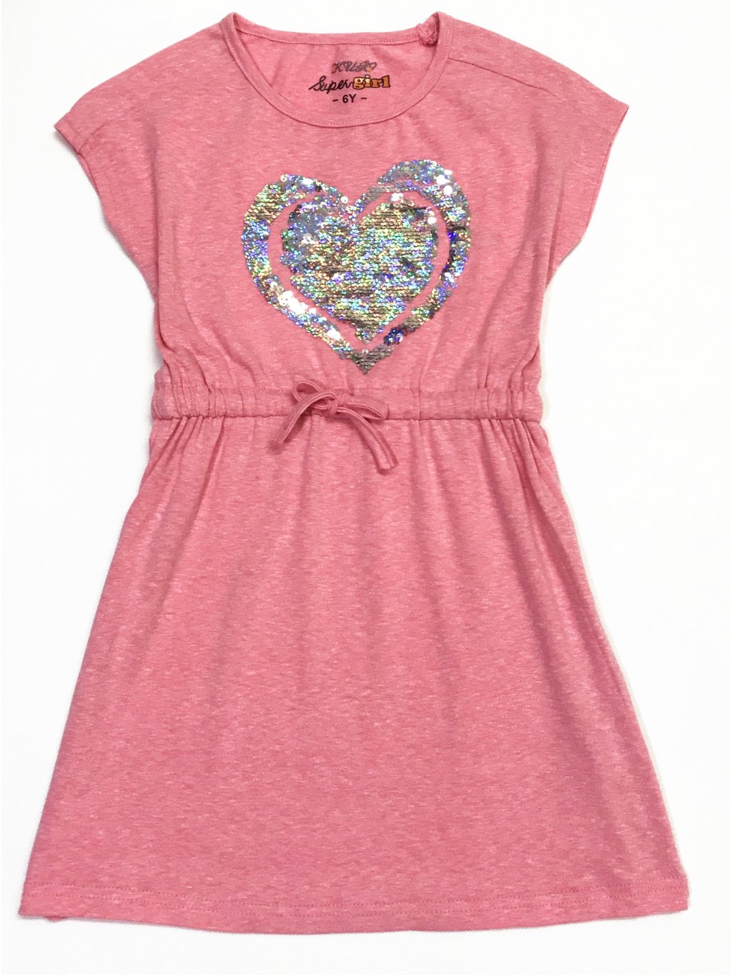 Sukienka dziewczęca z cekinami, materiał 65% bawełna, 30% poliester, 5% elastan