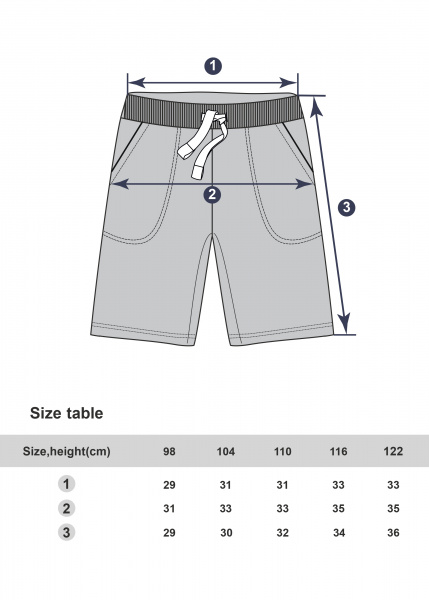 Szorty chłopięce, dwie kieszenie boczne, w pasie ściągacz, materiał: 100% bawełna 220g.