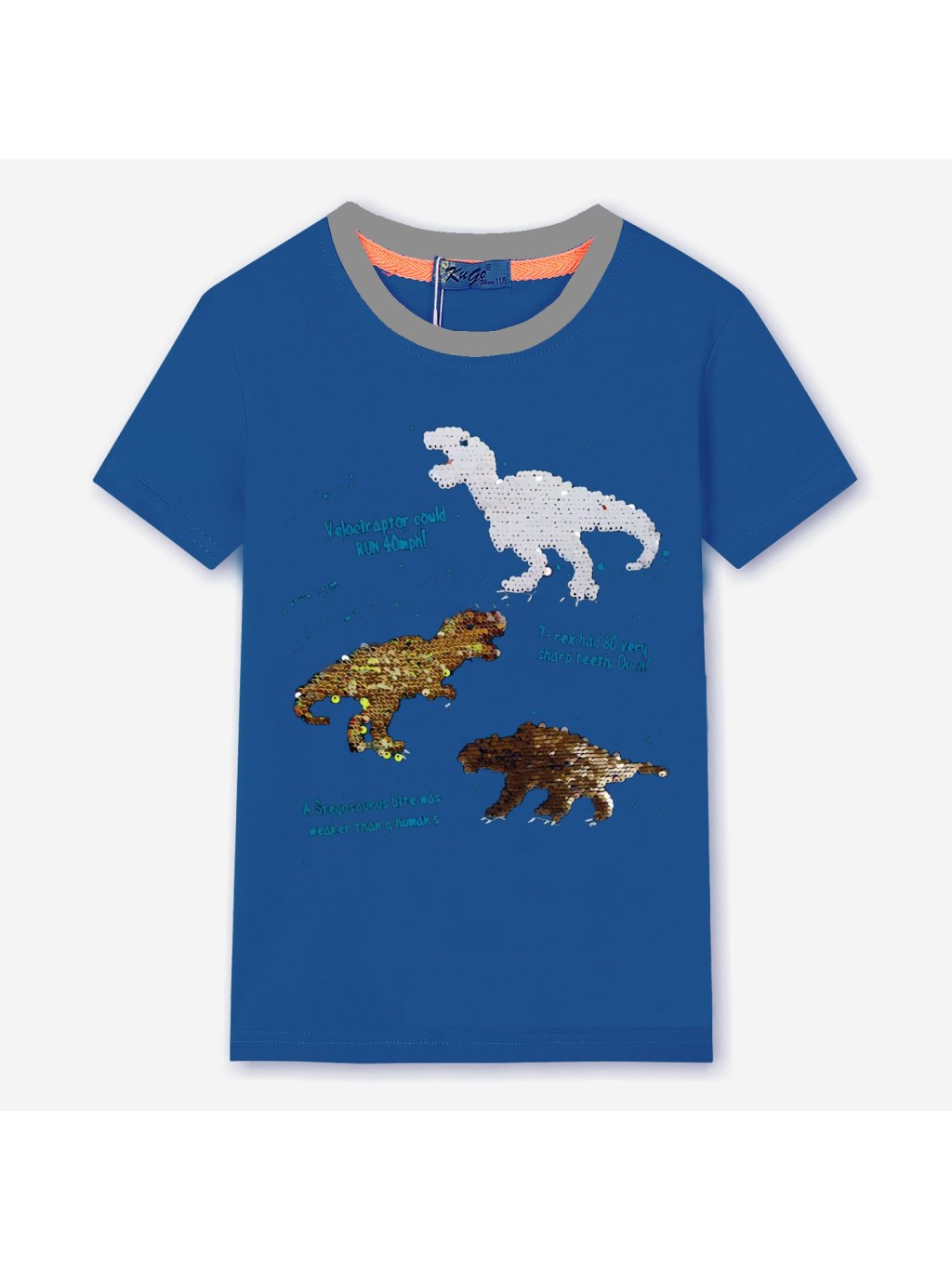 Chłopięcy T-shirt z cekinami, Dinozaury zmieniają kolor po odwróceniu cekinów, materiał: 100% bawełna